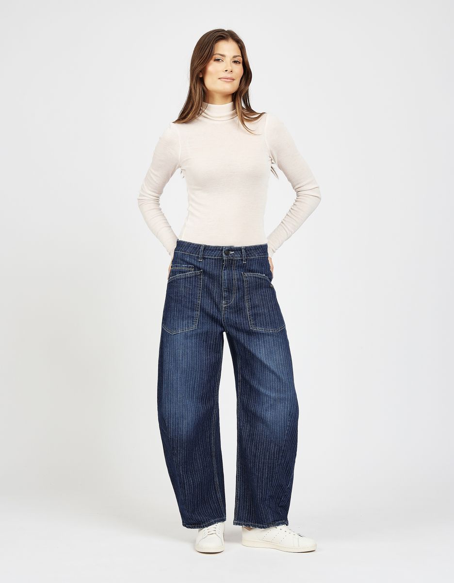Der coole, verk�rzte O-Shape 94ODINA hat eine leicht gerundete Seitennaht und vorne einen langen Abn�her vom Knie bis zum Saum. Die vorderen, aufgesetzten Taschen sitzen tief und das Bein l�uft zum Saum hin schmal zu.