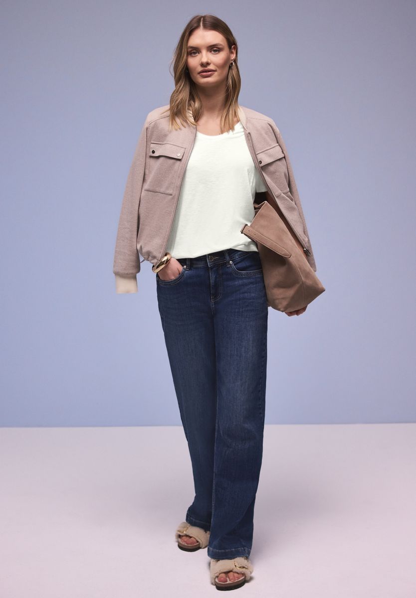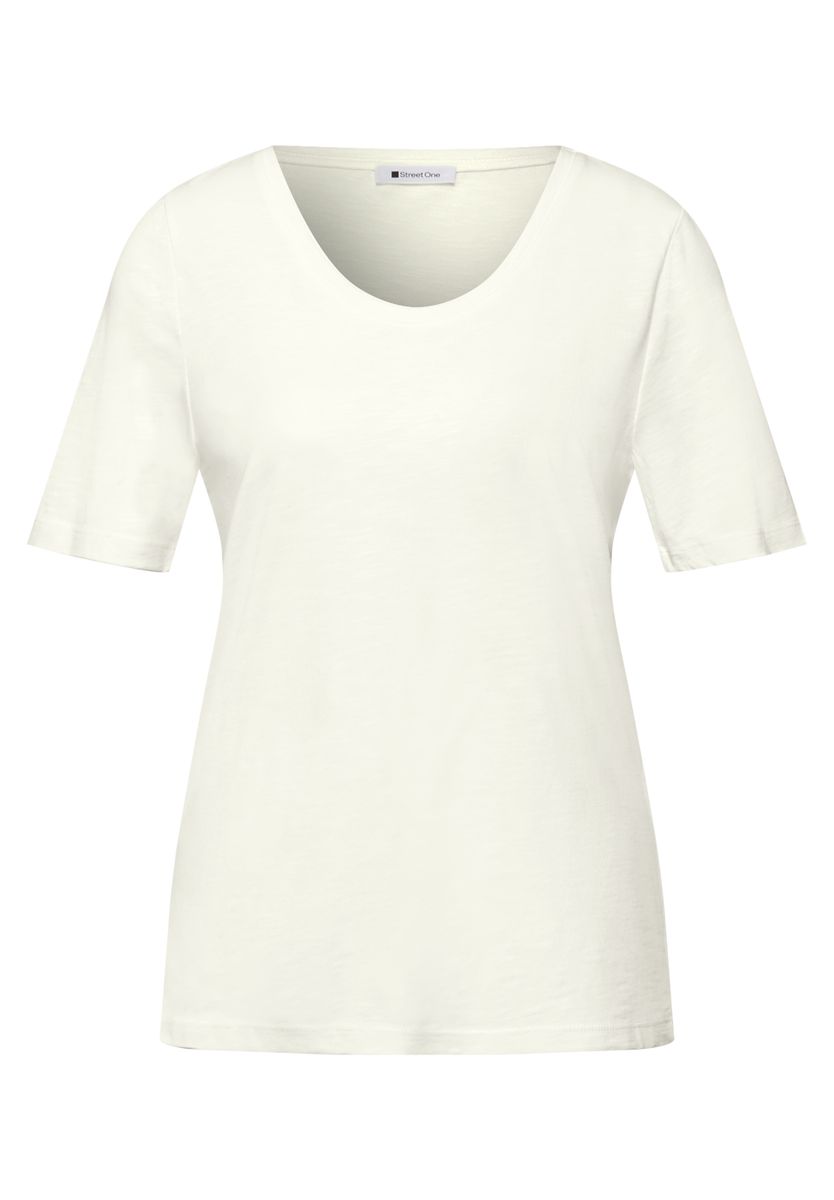 Das Basic T-Shirt von Street One für Damen begleitet dich mit seinem soften Baumwoll-Modalmix bequem durch jeden Tag. Der lässige Fit und der feminine V-Ausschnitt machen das Jerseyshirt zu einem vielseitigen Essential für unkomplizierte Looks. Dank der schlichten Unifarbe lässt es sich mühelos kombinieren. Ein angenehmes Tragegefühl macht das Shirt im Style Gerda schnell zum Favoriten in deiner Alltagsgarderobe. Jerseyshirt Casual V-Ausschnitt Kurzarm Schlicht und vielseitig Material: 50% Baumwolle, 50% Modal