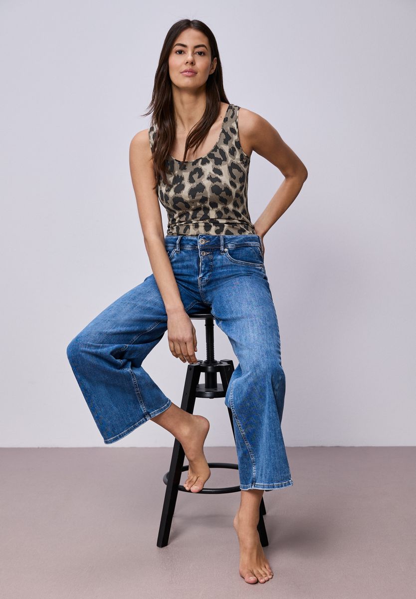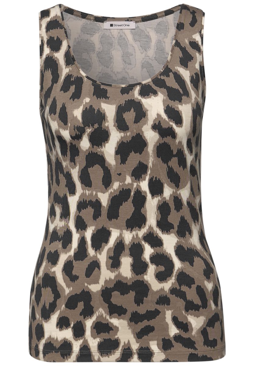 Das Leo Basic Top von Street One für Damen im Style Anni ist ein sommerlicher Hingucker für entspannte Looks. Der klassische Rundhalsausschnitt und der ärmellose Schnitt unterstreichen die lässige Silhouette. Der modische Animal Print bringt Abwechslung in dein Outfit, während der Baumwoll-Modalmix mit Stretchanteil angenehm weich auf der Haut liegt. Perfekt für warme Tage und vielseitige Kombinationen. Jerseytop Casual Rundhals Ärmellos Sommerlicher Hingucker Material: 48% Baumwolle, 48% Modal, 4% Elasthan
