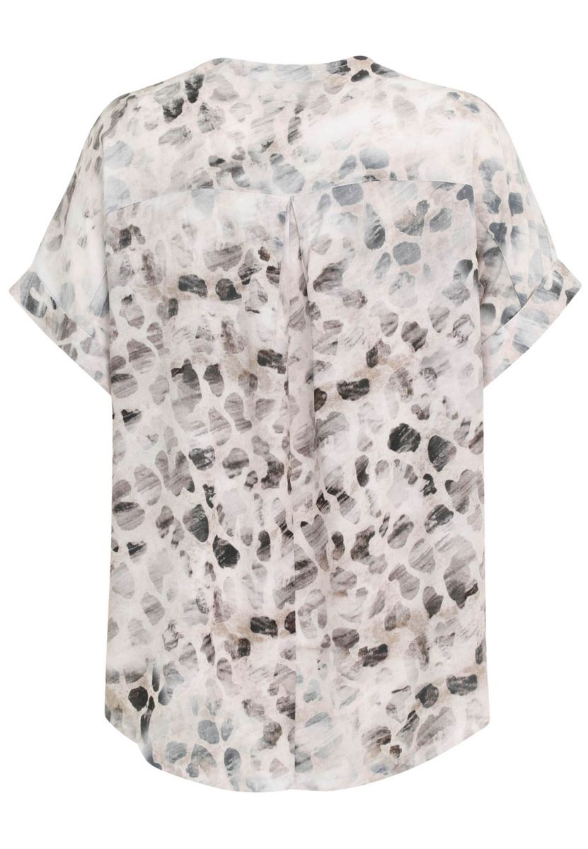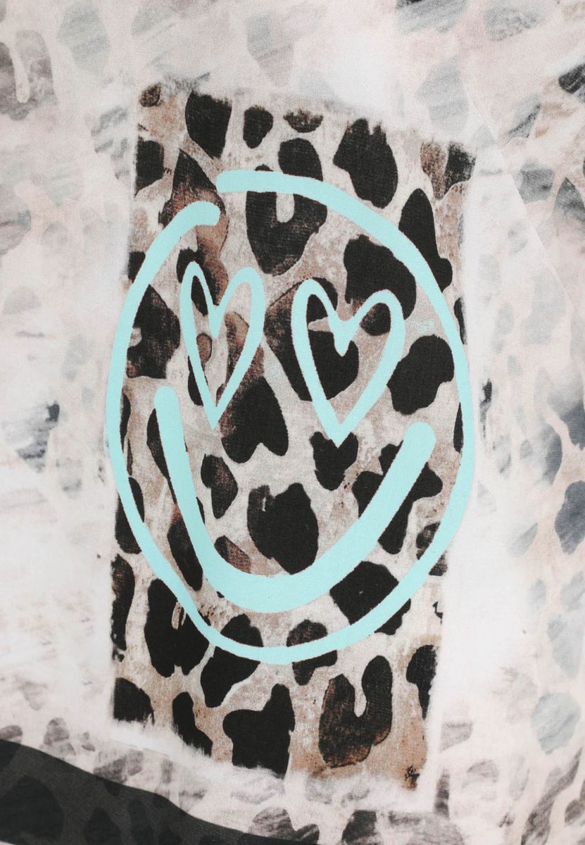 Die Schlupfbluse von Doris Streich ist durch ihren gerasterten Leo-Print und das platzierte Smiley-Motiv ein Hingucker. Das weiche Viskose-Material, die fließende Passform der Kurzarmbluse und der abgerundete Saum umspielen Ihre Figur perfekt. Die Weite