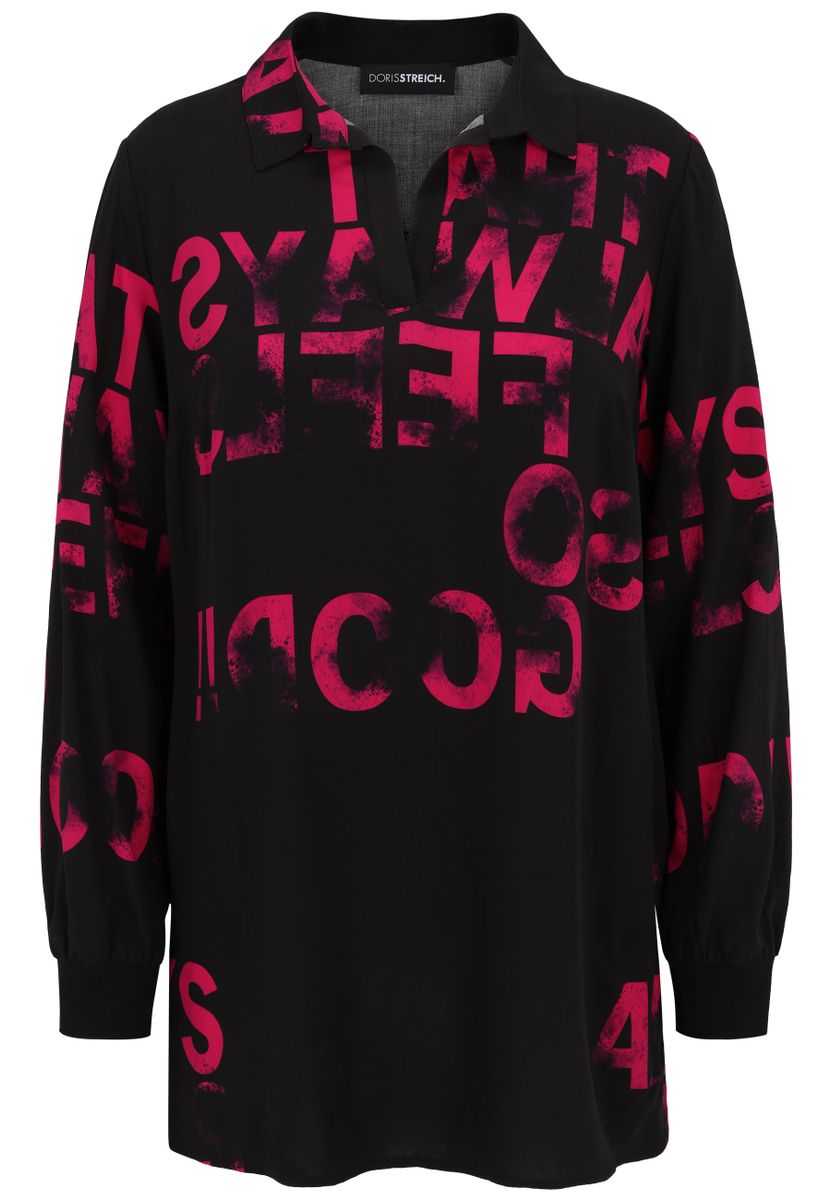 Diese lässige Bluse von Doris Streich mit ihrem Wording-Print ist ein Hingucker. Der fließende Schnitt in A-Linie, die Falte im Rückenteil und die Seitenschlitze zaubern eine schmale Silhouette. Die langen Ärmel haben ein lässiges elastisches