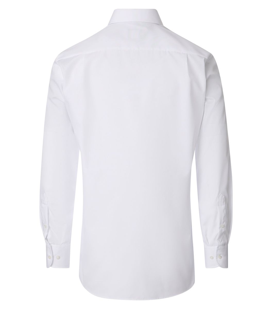 Das Herrenhemd mit langen Ärmeln überzeugt durch seine bequeme, großzügige Passform und bietet auch im Büroalltag hohen Tragekomfort. Gefertigt aus reiner Baumwolle, punktet es mit angenehmem Hautgefühl. Die fein gewebte Popeline sorgt zudem für eine glatte Oberfläche mit dezentem Glanz und unterstreicht die stilvolle Optik. Das klassische Design mit Kent-Kragen macht das Hemd vielseitig kombinierbar – etwa zu Anzughose, Sakko oder elegantem Zubehör wie Fliege und Einstecktuch. Ein zeitloses Modell für den gehobenen Business-Look.