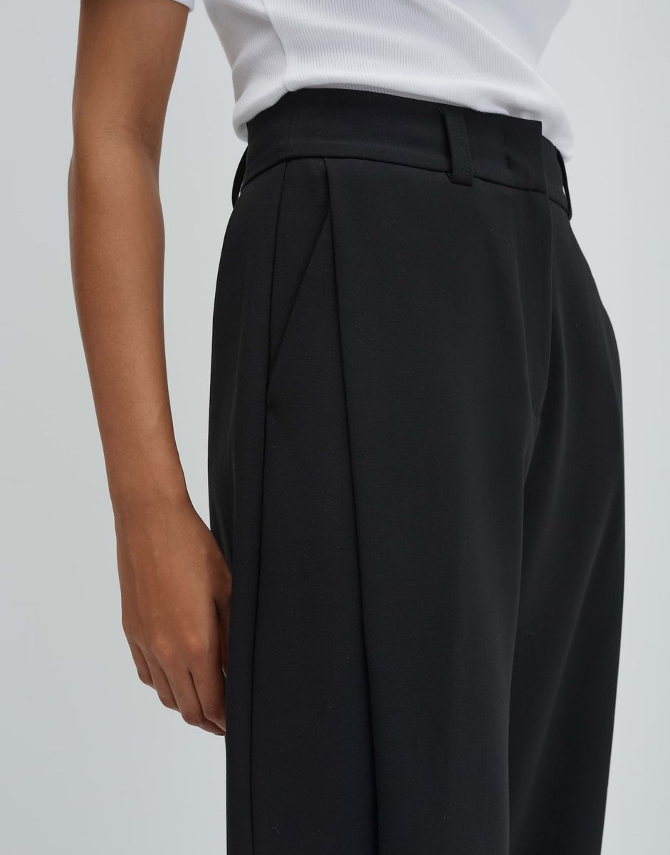ovaler Beinverlauf, Hosenbein Innenlänge ca. 66 cm in jeder Größe, Model Größe 173 cm – trägt Größe 36, Webware, glatter Griff, leicht elastischer Stoff, pflegeleicht, schräge Eingrifftaschen, Zier-Paspeltaschen hinten, Bundfalten, verdeckter Zip-Fly, elastischer Gummibund