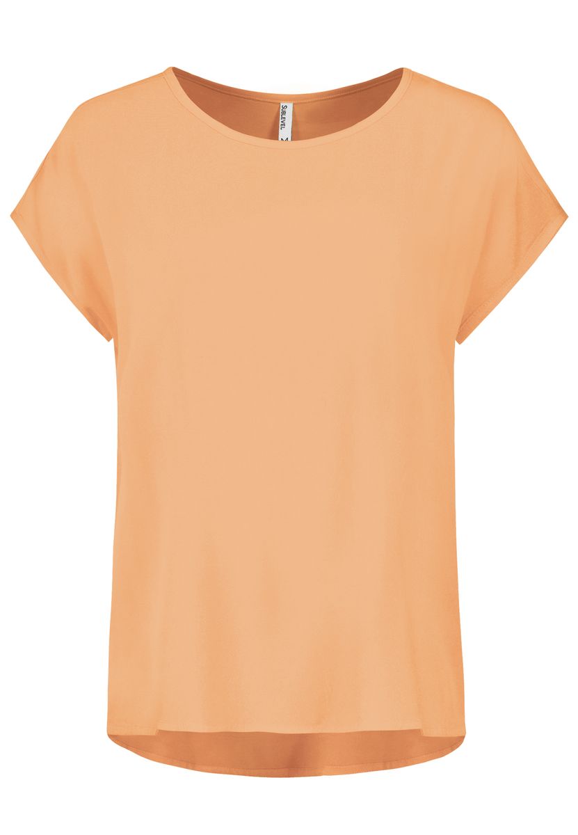 DOB Bluse, Rundhals mit Piping, überschnittene Schultern, angeschnittene Ärmel, runder Saum,RT länger als VT