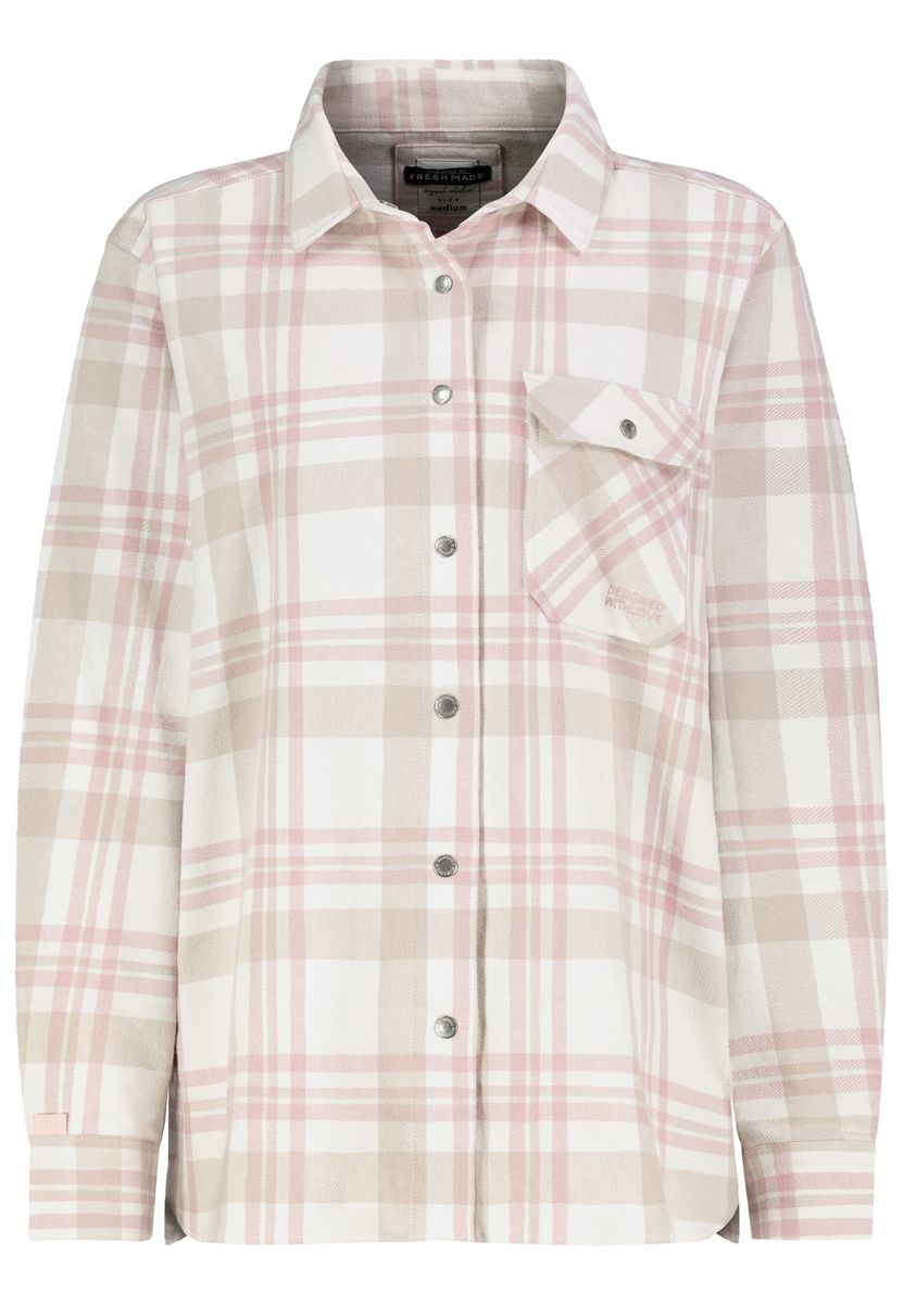 DOB brushed twill Karohemdbluse, BrusttascheKnopfleiste,Kragen mit Steg, Manschetten mit Ärmelschlitzen