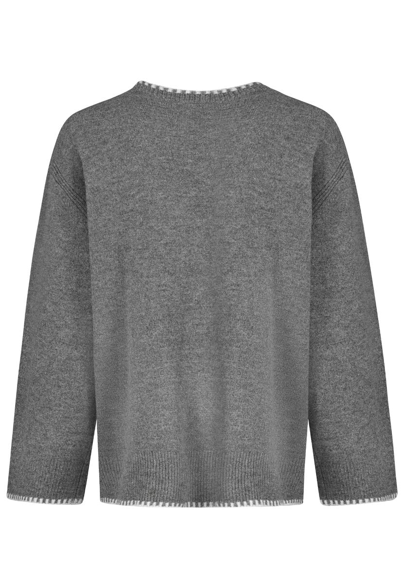 DOB Strick Pullover, langarm, Rundhals, Rippe an Kragen, Ärmel und Saum mitkontrast strick detail, Fully fashion