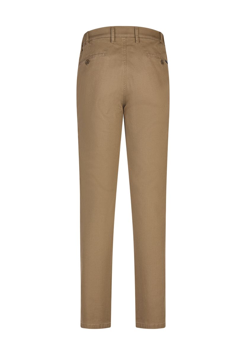 Super bequeme Chino im Slim Fit mit superelastischem Smokbund und Hemdstopper. Gefertigt aus einer hochelastischer High Stretch-Baumwolle in wunderschöner Dobby-Struktur. Das Double Dye-Verfahren verleiht der Hose einen casualigen Look.Gewicht: 445 g/lfm Das Modell bietet eine mittlere Leibhöhe und ein schlankes Bein bei schmaler Fußweite.
