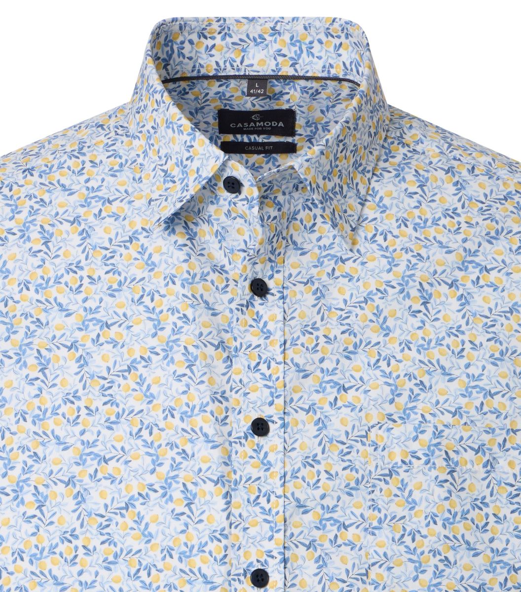 Dieses Freizeithemd überzeugt durch seinen floralen Allover-Print und bringt so frischen Wind in Ihre Garderobe. Dank der hochwertigen Baumwolle erleben Sie ein angenehmes Tragegefühl, das durch die bequeme und weite Passform im Comfort-Fit zusätzlich betont wird. Der klassische Kent-Kragen verleiht dem Hemd einen zeitlosen Look und sorgt für einen gepflegten Auftritt, egal ob im Büro oder in der Freizeit. Die Kurzarm-Variante ist besonders an warmen Tagen eine komfortable Wahl. Praktisch erweist sich die Brusttasche, in der Sie kleine Utensilien stets griffbereit haben. Die raffinierte Drucktechnik bringt das detailreiche Muster optimal zur Geltung. Besonders gut lässt sich dieses Hemd mit einer Jeans, Chino oder kurzen Sommerhose kombinieren und eignetsich somit sowohl für entspannte Treffen als auch legere Geschäftsanlässe. Setzen Sie auf Stil und Komfort zum unkomplizierten Kombinieren.