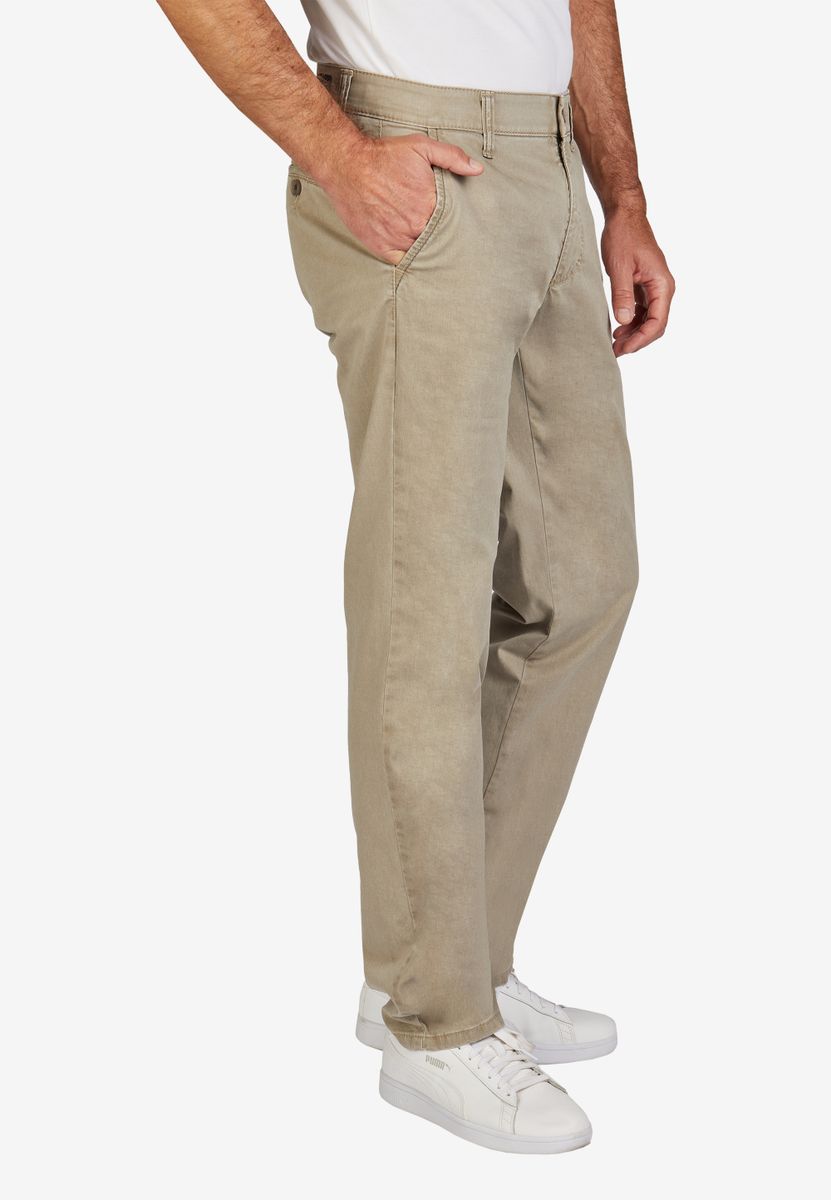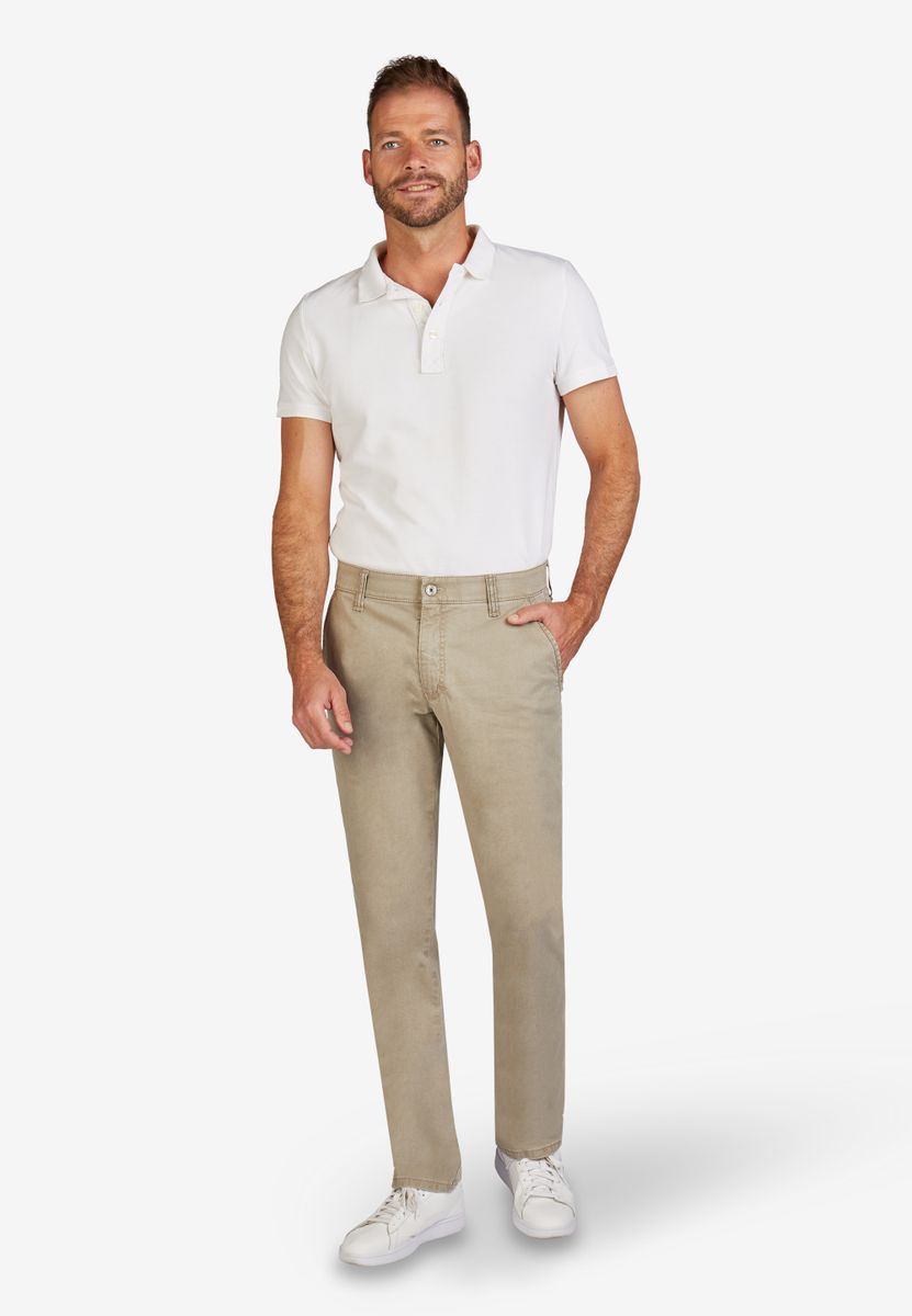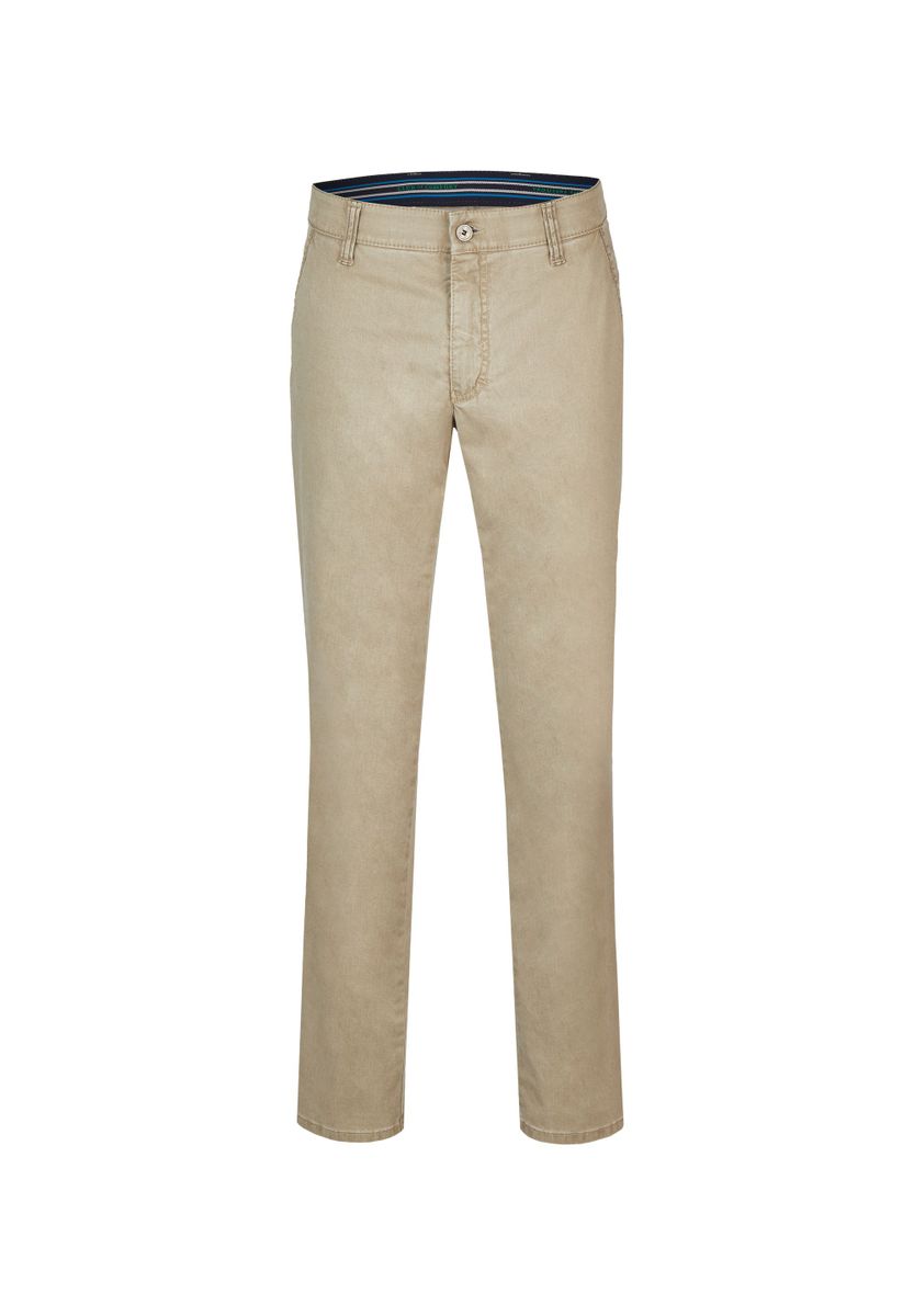 Bequeme Flat Front-Hose mit elastischem Komfortbund und Hemdstopper. Der dezente Kontrast an den Seiten- und Gesäßtaschen gibt der Hose einen sportiven Touch. Gefertigt aus einem Baumwoll Broken-Twill mit High Stretch. Dazu die Fade-Out-Färbung, die den sommerlichen Charakter unterstreicht. Das Modell bietet eine normale Leibhöhe und wegen der schmaleren Fußweite einen schlankeren Beinverlauf.