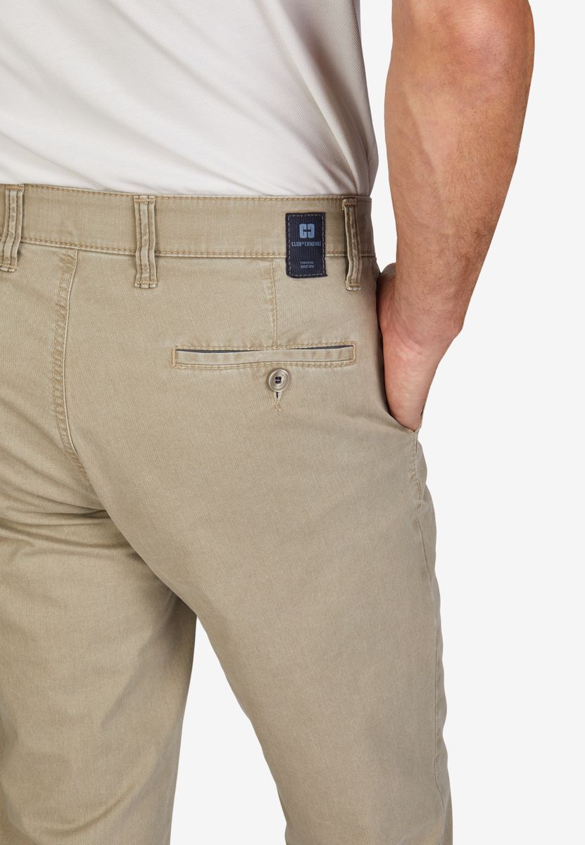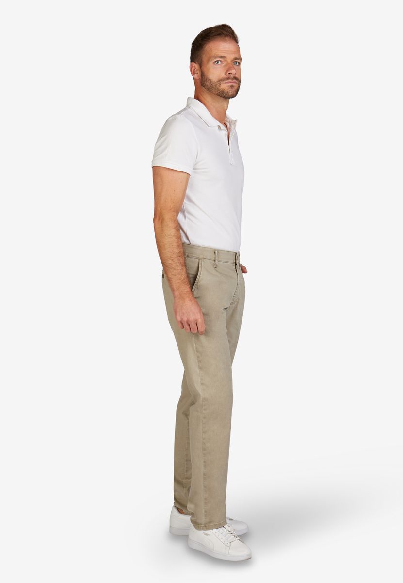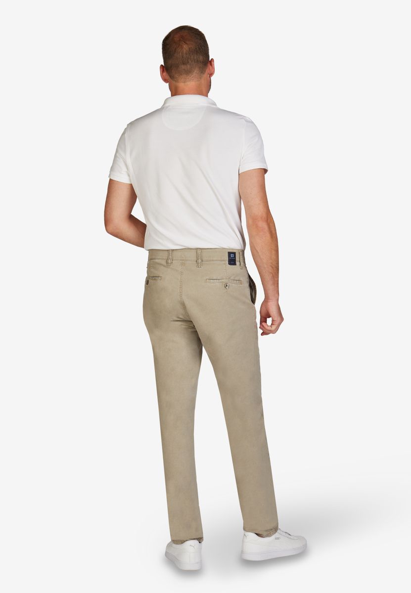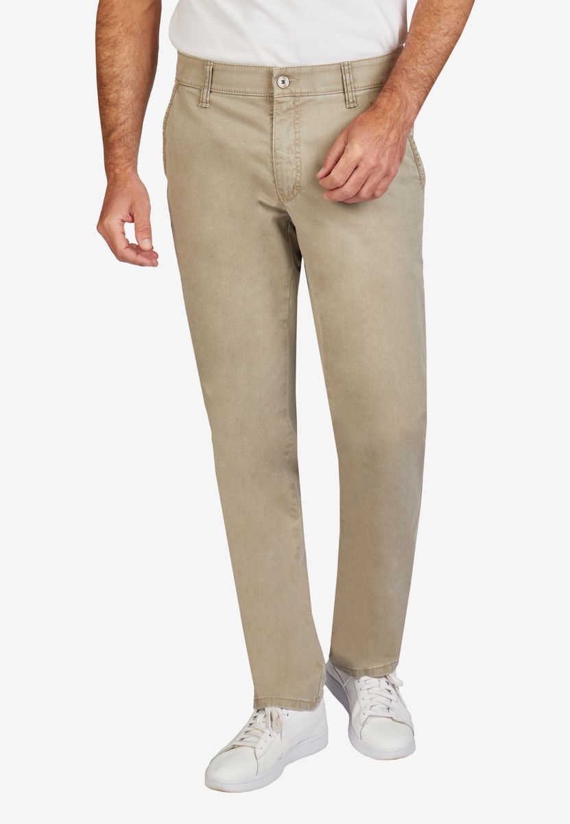 Bequeme Flat Front-Hose mit elastischem Komfortbund und Hemdstopper. Der dezente Kontrast an den Seiten- und Gesäßtaschen gibt der Hose einen sportiven Touch. Gefertigt aus einem Baumwoll Broken-Twill mit High Stretch. Dazu die Fade-Out-Färbung, die den sommerlichen Charakter unterstreicht. Das Modell bietet eine normale Leibhöhe und wegen der schmaleren Fußweite einen schlankeren Beinverlauf.