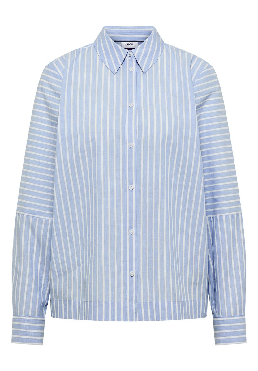 Die Hemdbluse mit feinem Streifenmuster und klassischem Hemdkragen von CECIL für Damen ist ein moderner Klassiker. Reine Baumwolle sorgt für hohen Tragekomfort, während Knopfleiste und Bündchen mit Knopf den Look abrunden. Ideal für Business oder Freizeit. Baumwollbluse Casual Hemdkragen Langarm Modern Material: 100% Baumwolle