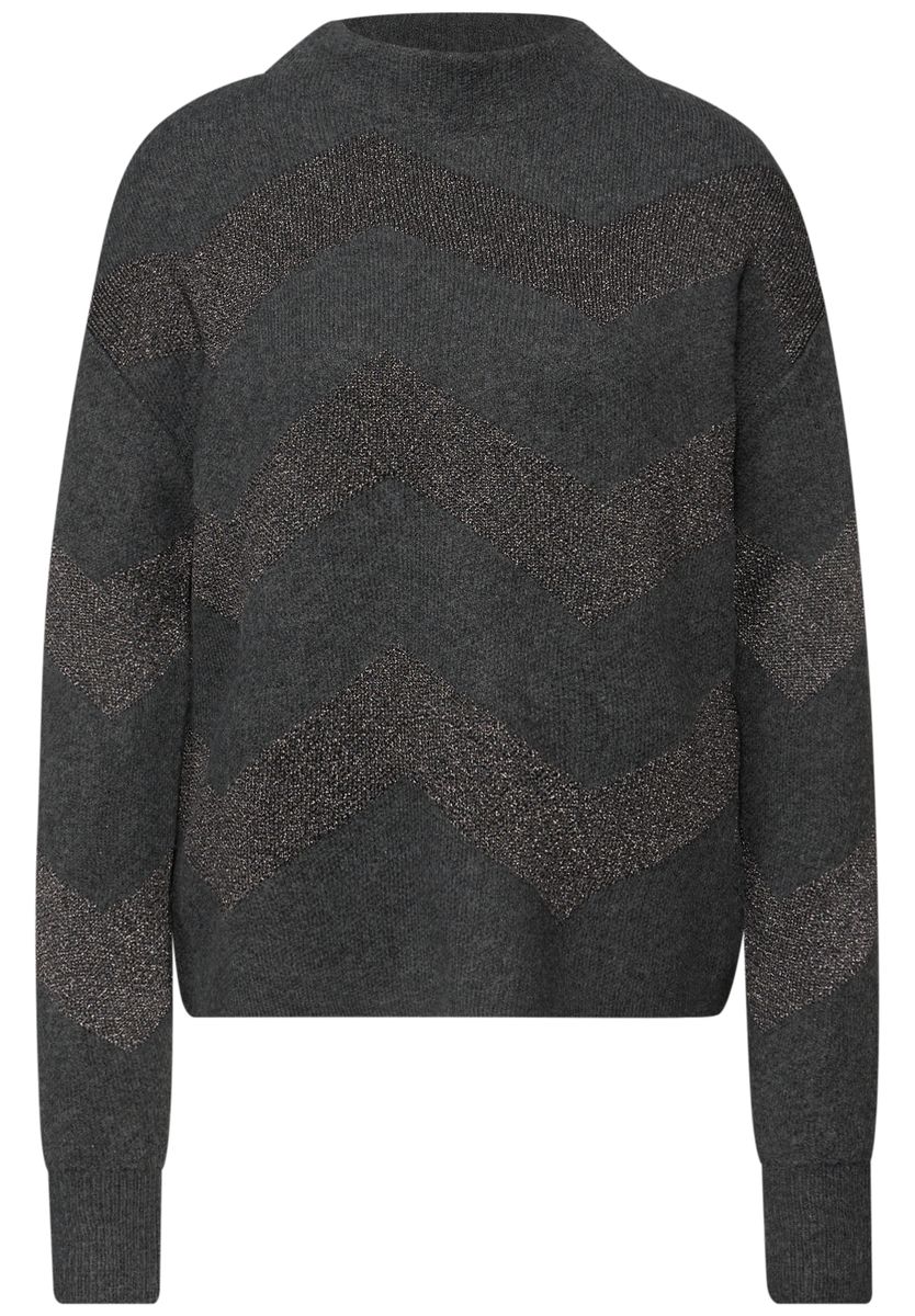 Funkelnde Akzente für deinen Look: Der Strickpullover von Street One für Damen zeigt sich mit grafischem Jacquardmuster und dezenten Glitzerdetails. Der Turtleneck und die langen Ärmel mit Bündchen sorgen für ein angenehmes Tragegefühl. Ideal für stilvolle Outfits mit einem Hauch Glamour. Strickpullover Grafisches Muster Glitzerdetails Turtleneck Langarm mit Bündchen Material: 65% Polyester, 18% Polyacryl, 14% Baumwolle, 3% Nylon