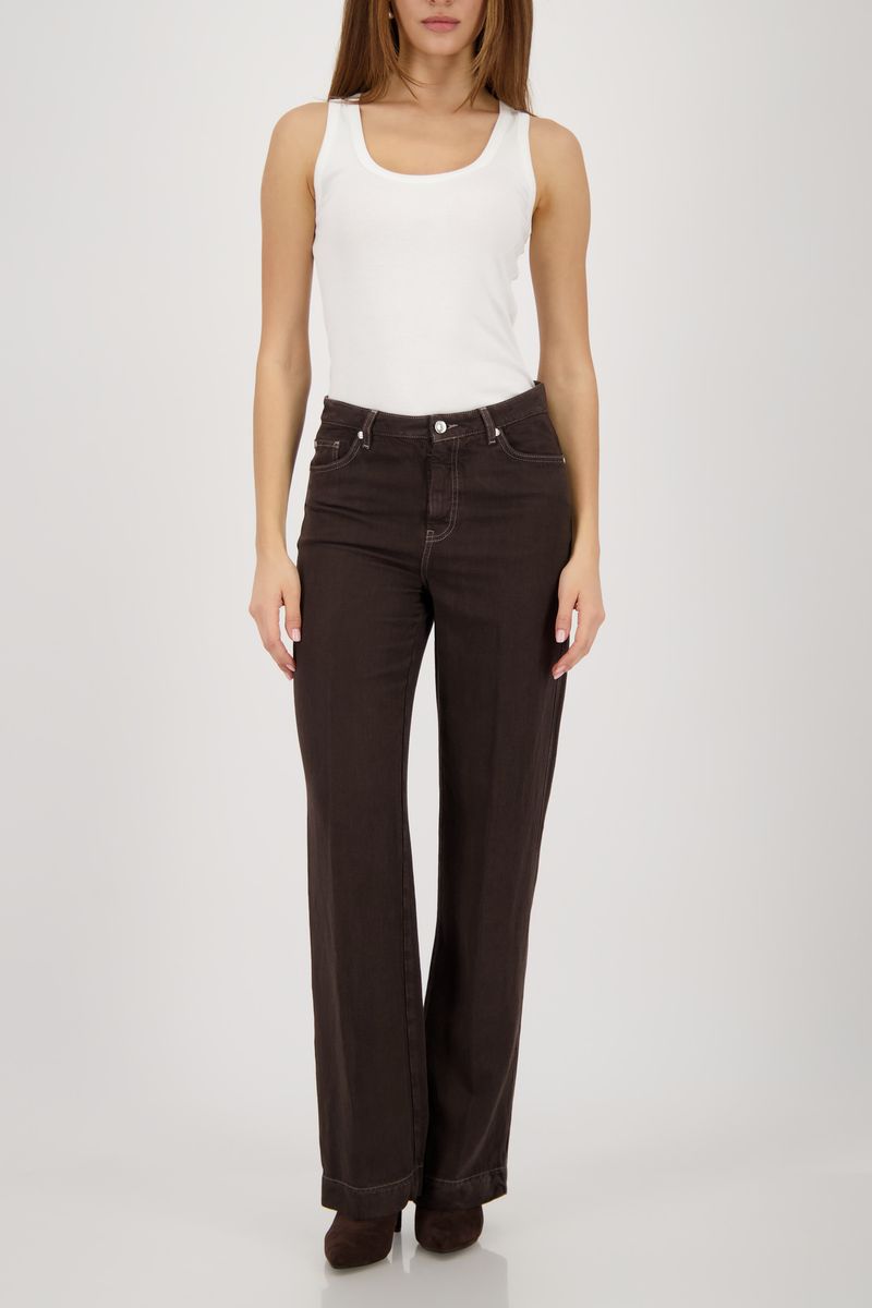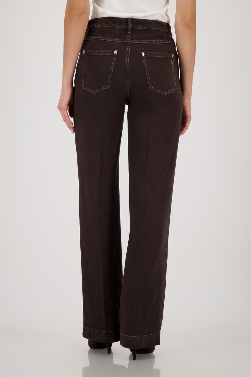 Elegante Straight-Leg-Hose aus einer fließenden Viskose mit Leinen. Kontrastnähte und praktische Taschen schaffen moderne Raffinesse.