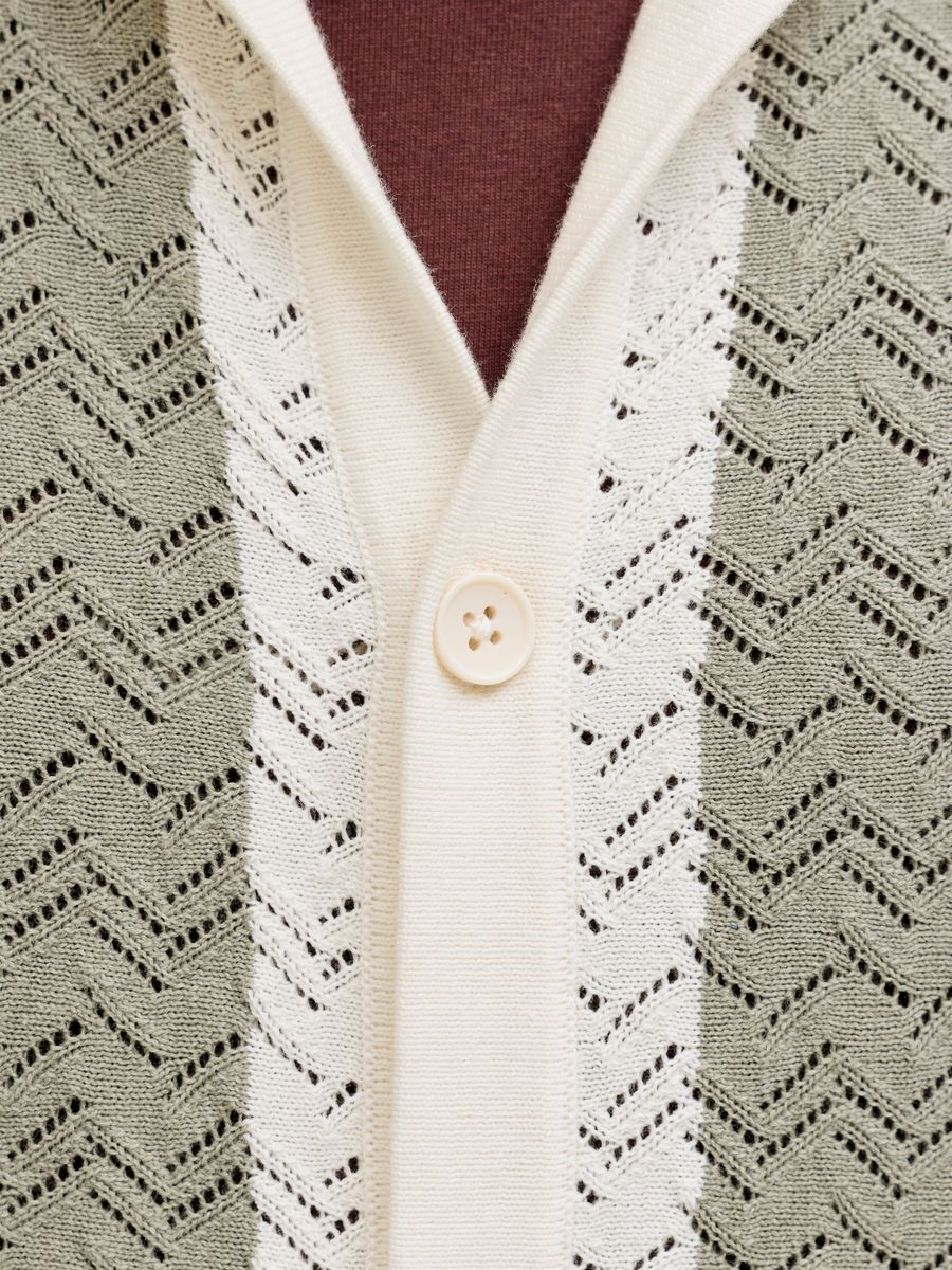 Dieses lässige Strickteil kannst du am Wochenende zu Jeans oder im Büro über einem Hemd zu einer Stoffhose tragen.Strukturstrick hat eine feine Textur für einen edlen Look. - Produkttyp : Polo - Hals : Polokragen - Ärmel : Kurzarm - Ärmel : Tief angesetzte Schulter - Verschluss : Knopfleiste - Passform : Locker geschnitten