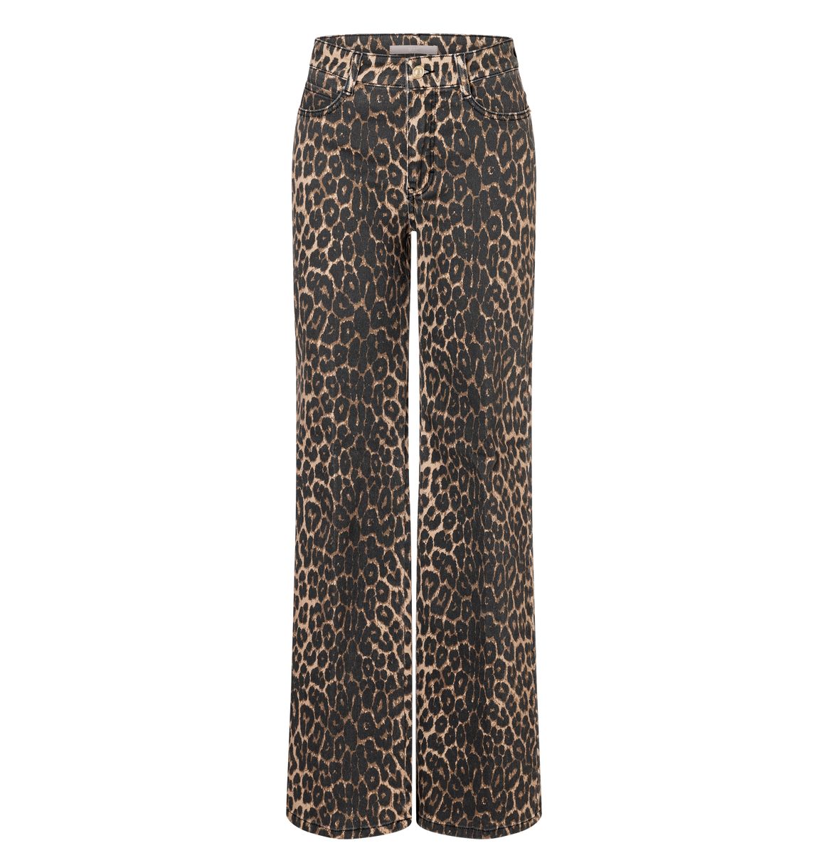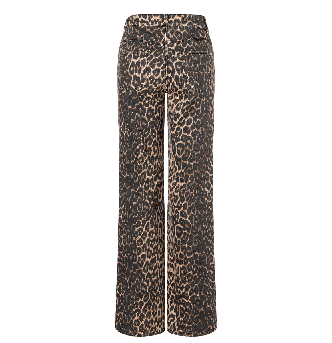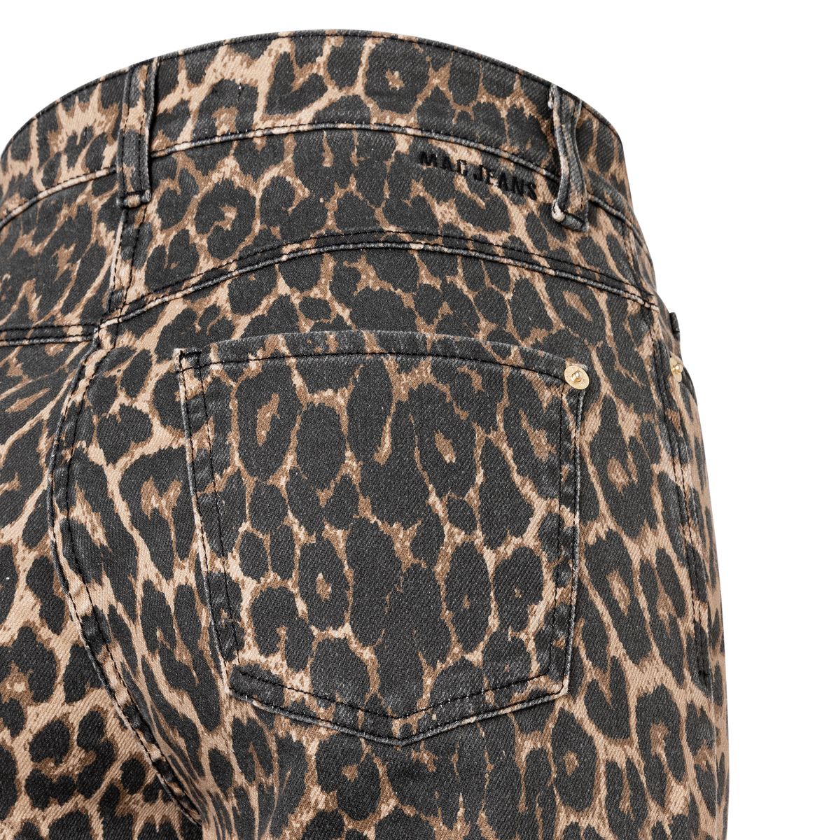 Wide Fit, Wide Leg, weites, gerades Bein, mittlere Leibhöhe, bequeme Taille, Five Pocket, moderner Leo-Print, feine Bügelfalten, Colour Denim in Authentic Comfort Stretch-Qualität, hochwertiges, elastisches Material mit hohem Baumwoll-Anteil, authentische, strukturierte Optik, angenehmer Griff, hervorragende Passform, hoher Tragekomfort, Das Model ist 1,75m groß und trägt die MAC Hosengröße 36, Fußweite bei Größe 36: 52cm