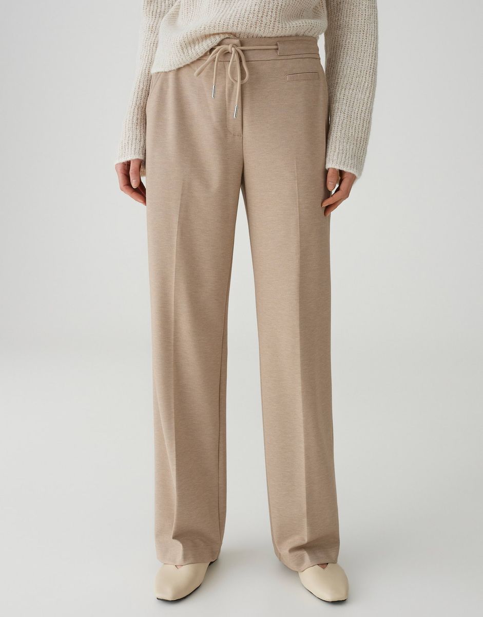 weiter, gerader Beinverlauf, Hosenbein Innenlänge ca. 81 cm in jeder Größe, Model Größe 177 cm – trägt Größe 36, Webware, weicher Griff, leicht elastischer Stoff, knitterarm, Mélange-Effekt, schräge Eingrifftaschen, Zier-Paspeltasche hinten, Bügelfalten, Kordel zum Binden, verdeckter Zip-Fly