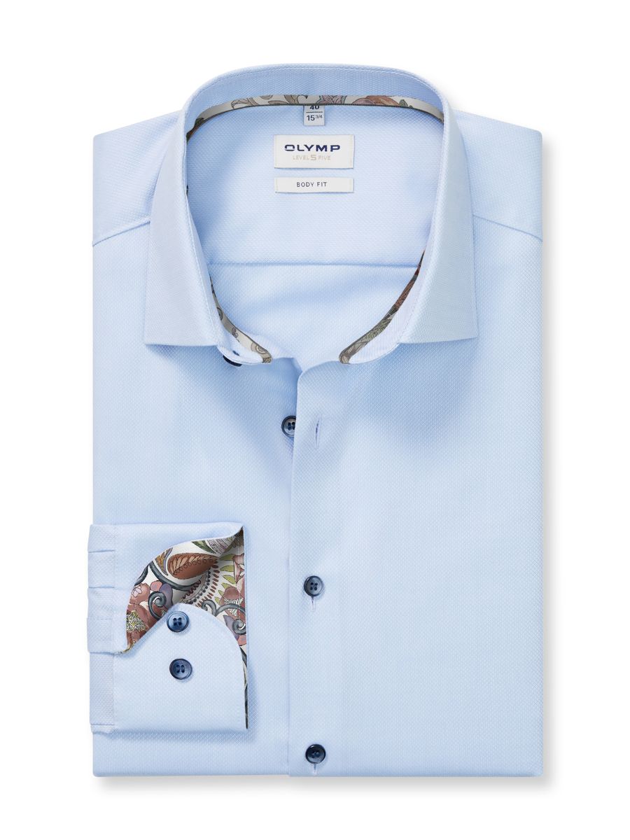 Das einfarbige OLYMP Businesshemd in Bleu mit modischen Kontrasten in Kragen und Manschetten lässt sich ideal mit OLYMP Casual-Styles kombinieren. Die fein strukturierte Textur aus Baumwolle mit minimalem Stretch-Anteil ist hautsympathisch, formstabil und atmungsaktiv. New York Kent, körperbetont, besonders bügelleicht.