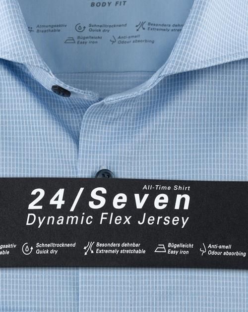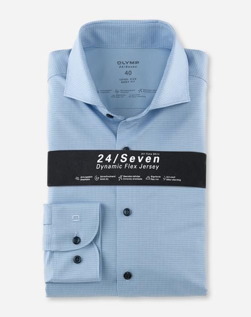 Mit diesem zeitlosen Klassiker hält das innovative 24/Seven-Konzept Einzug in die Business-Etage. Gewebtes Mini-Karo wird immer dann gerne gewählt, wenn Seriosität gefragt ist, ein Modell in uni aber zu schlicht wirken könnte. Das Hemd der Linie OLYMP Level Five setzt ganz auf bewährte Schnittmerkmale, mit schlankem Body Fit und elegantem Haifisch-Kragen. Mit dem innovativen, superflexiblen All-Time-Jersey wurde hier zudem eine hoch moderne Materialqualität verarbeitet. Gefertigt nach dem beliebten GREEN-CHOICE-Standard.