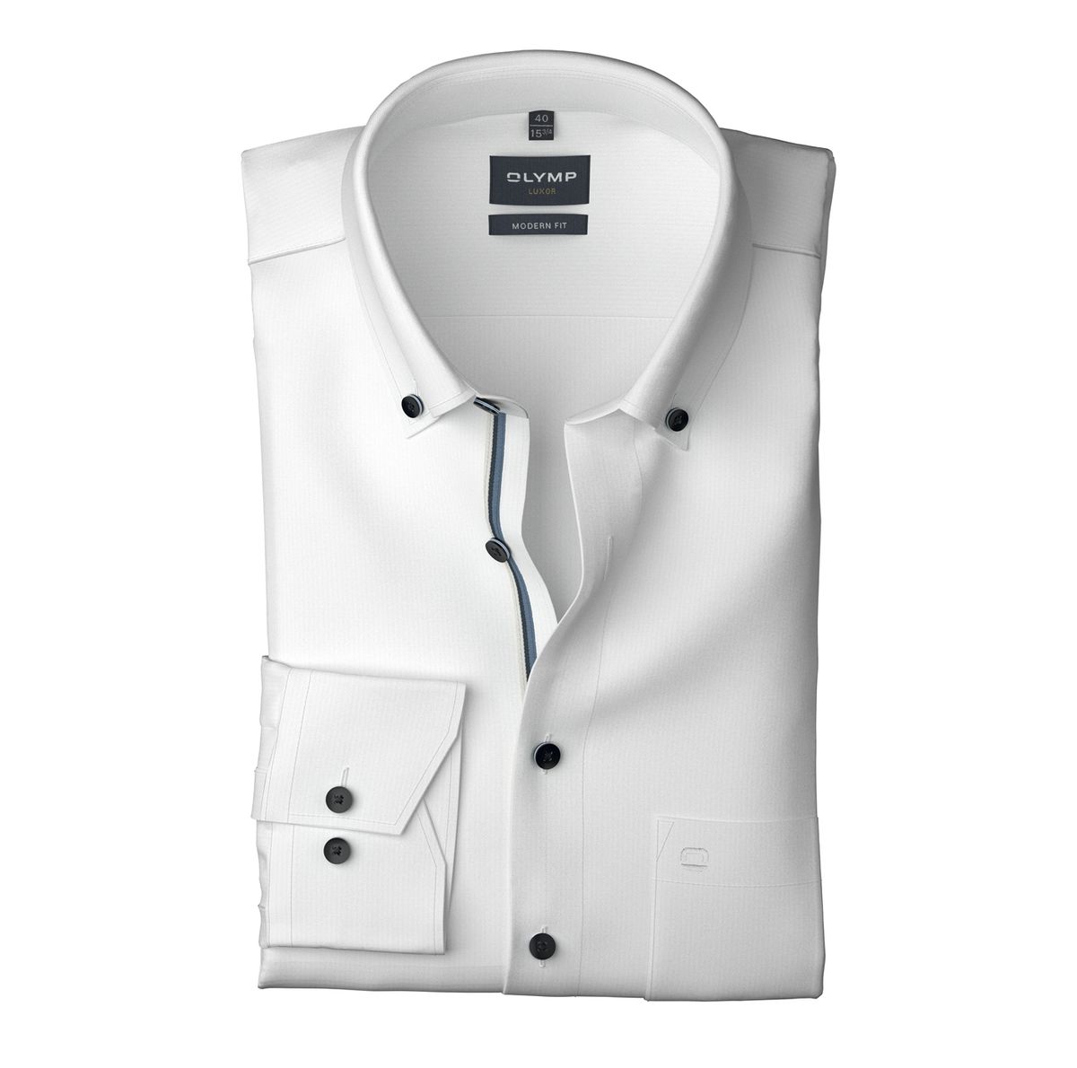 Der einfarbige OLYMP Luxor Oxford-Klassiker aus besonders feinen Garnen darf in keiner Business-Garderobe fehlen. Das leicht schimmernde Baumwollgewebe besticht durch Weichheit und hervorragende Dehnbarkeit. Das CI-Band an der Knopfleiste und der Schichtknopf setzen modische Akzente. Sportiver Button-Down. Bügelfrei.