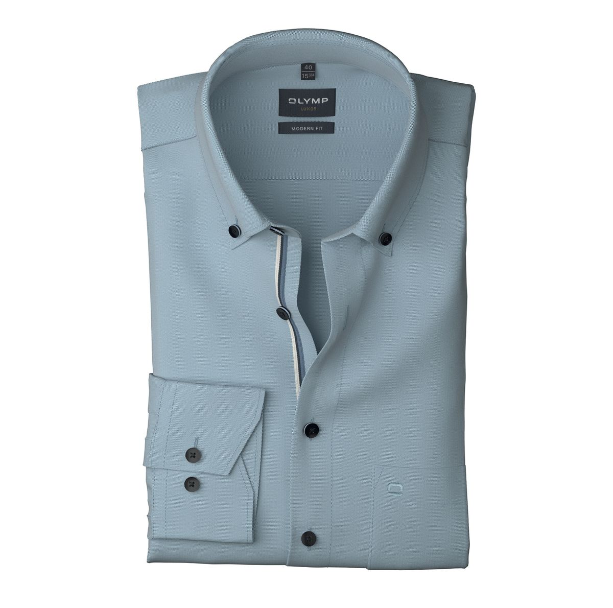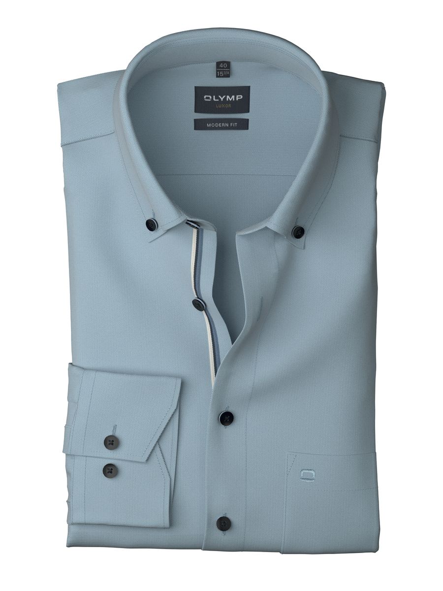 Der einfarbige OLYMP Luxor Oxford-Klassiker aus besonders feinen Garnen darf in keiner Business-Garderobe fehlen. Das leicht schimmernde Baumwollgewebe besticht durch Weichheit und hervorragende Dehnbarkeit. Das CI-Band an der Knopfleiste und der Schichtknopf setzen modische Akzente. Sportiver Button-Down. Bügelfrei.