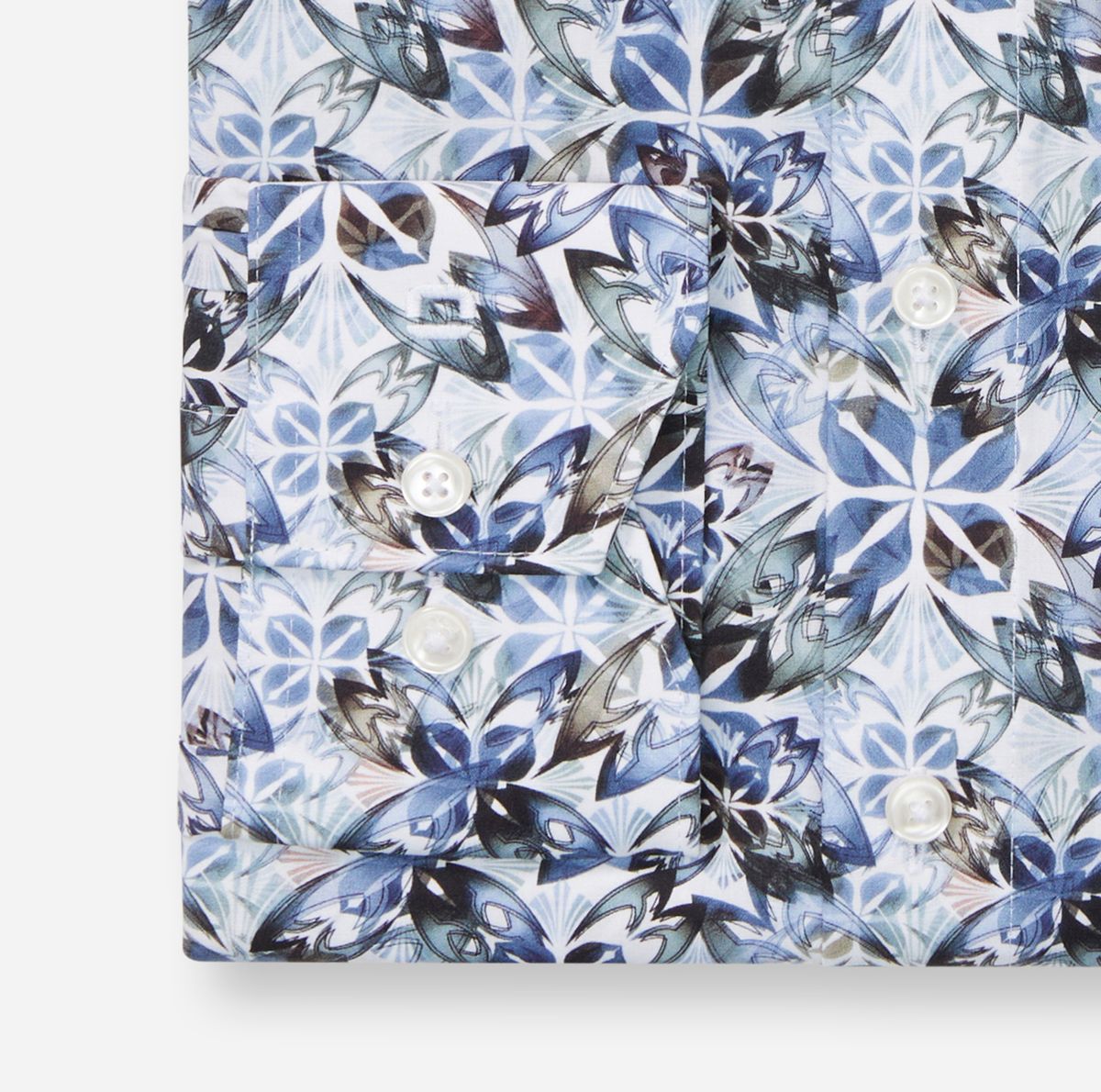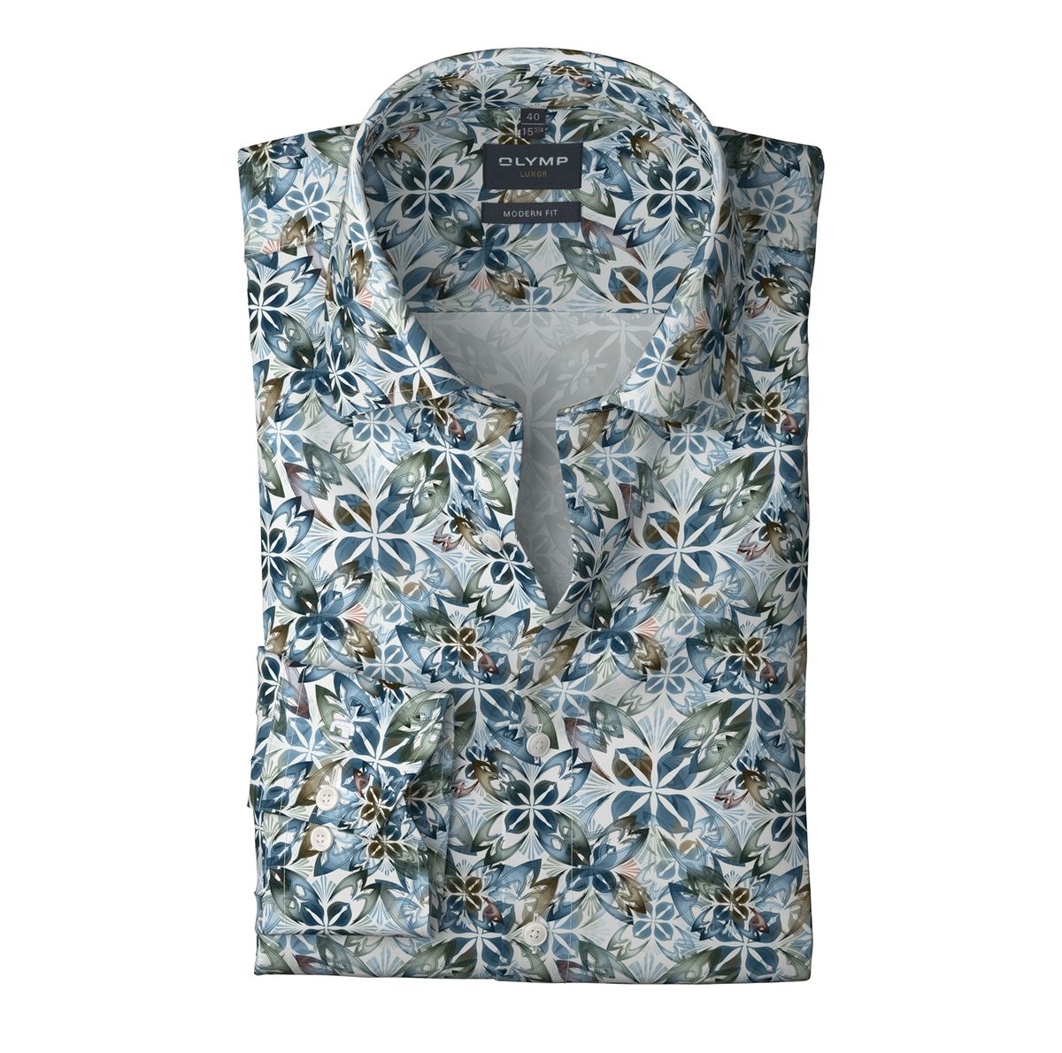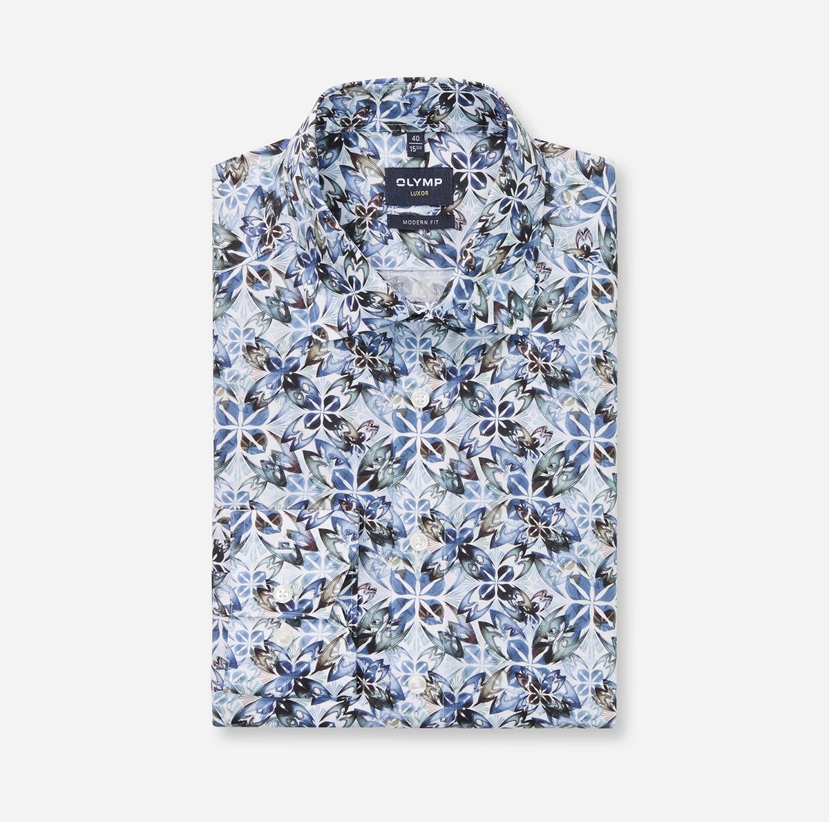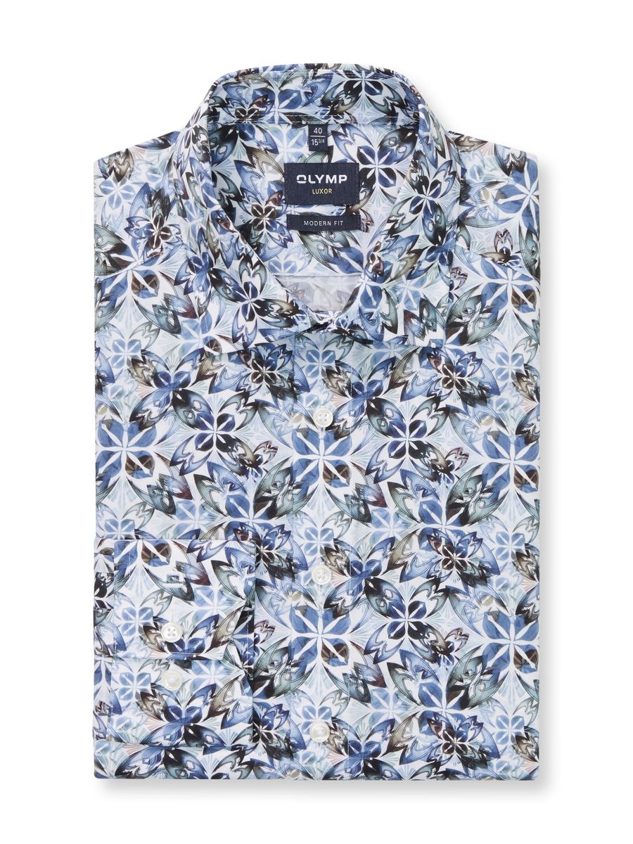 Für den individuellen Auftritt sorgt dieses OLYMP Luxor modern fit Businesshemd. Der mehrfarbige Print auf Weiß ist akzentuiert auf saisonale Blau- und Naturtöne und setzt kreative Akzente. Die Popeline-Textur aus feinen Baumwollgarnen ist leicht, glatt, natürlich dehnbar, hautsympathisch und zeitsparend bügelfrei. Vielseitiger New Kent, körpernahe Linie.