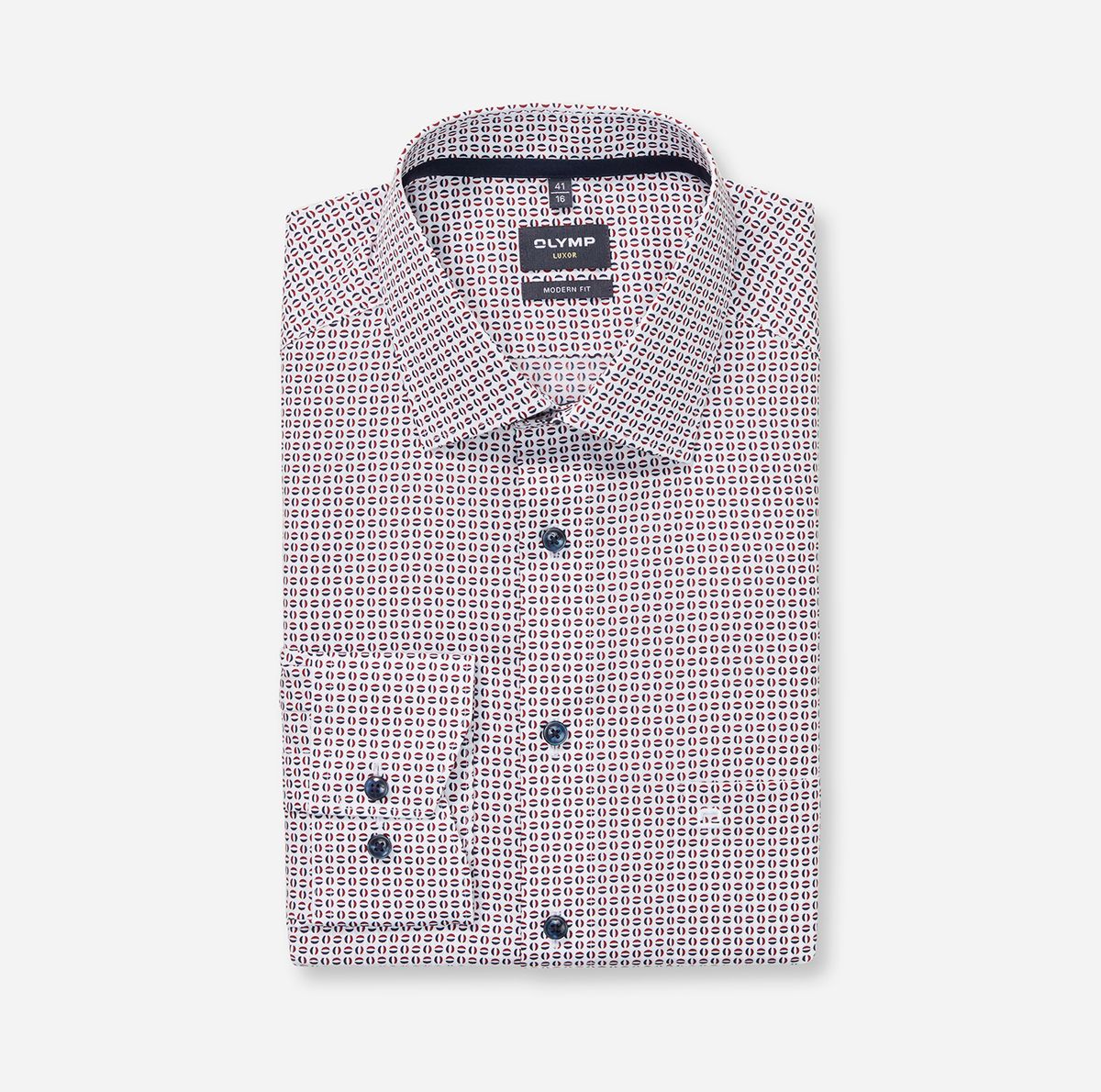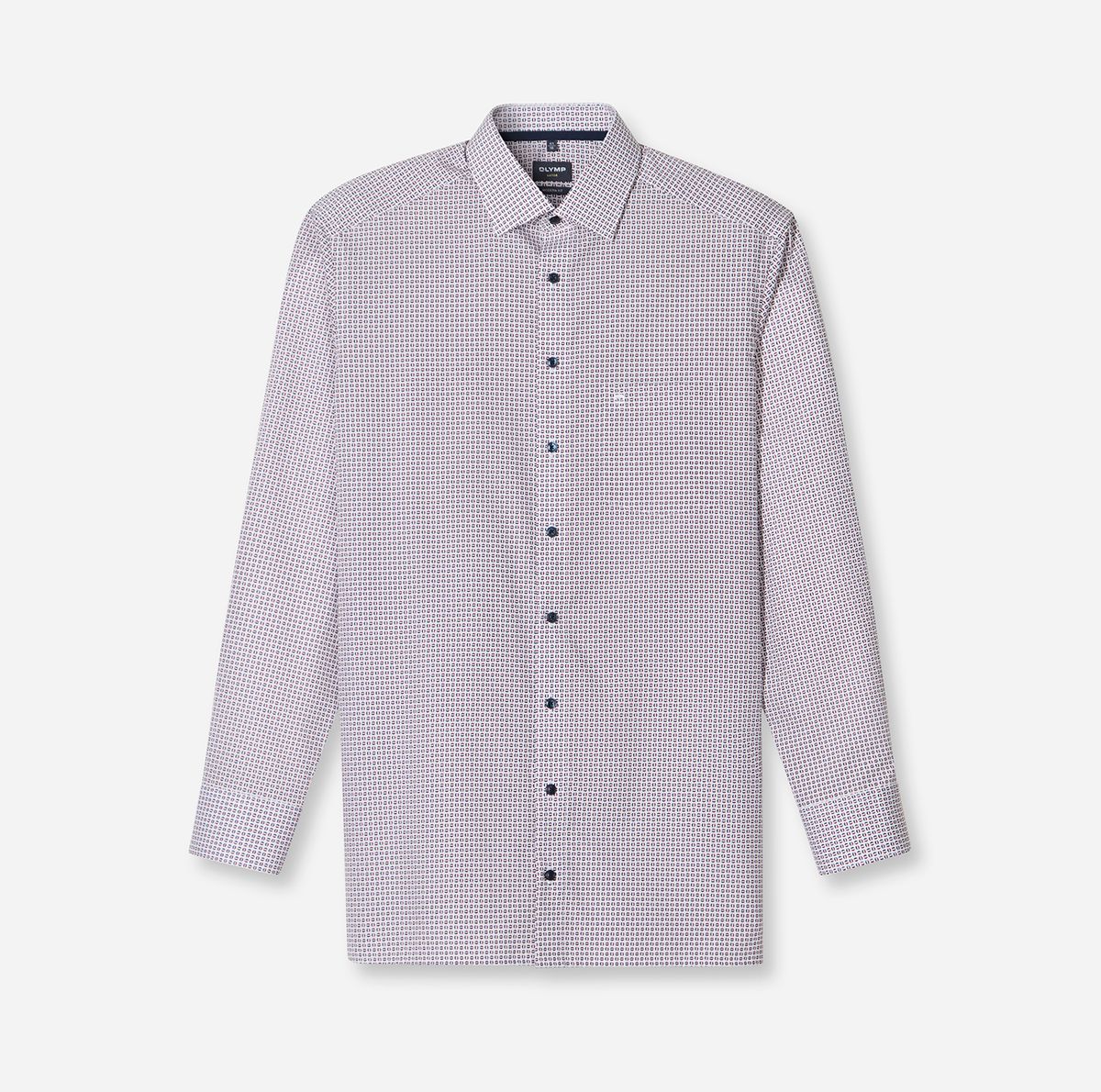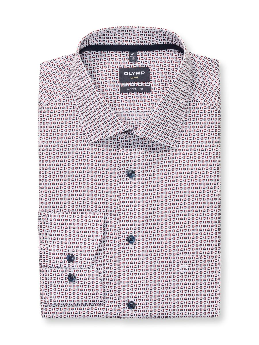 Ein perfekter Office-Look, smart, dynamisch, stilvoll. Die körpernahe Linie des OLYMP Luxor Businesshemdes aus feinen Baumwollgarnen und das charmante Minimal-Dessin in blautonaler Farbkomposition und Chianti-Rot wirken inspirierend. Der vielseitige New Kent matcht zur sportiven Business-Performance. Bügelfrei, natürlich dehnbar, atmungsaktiv.