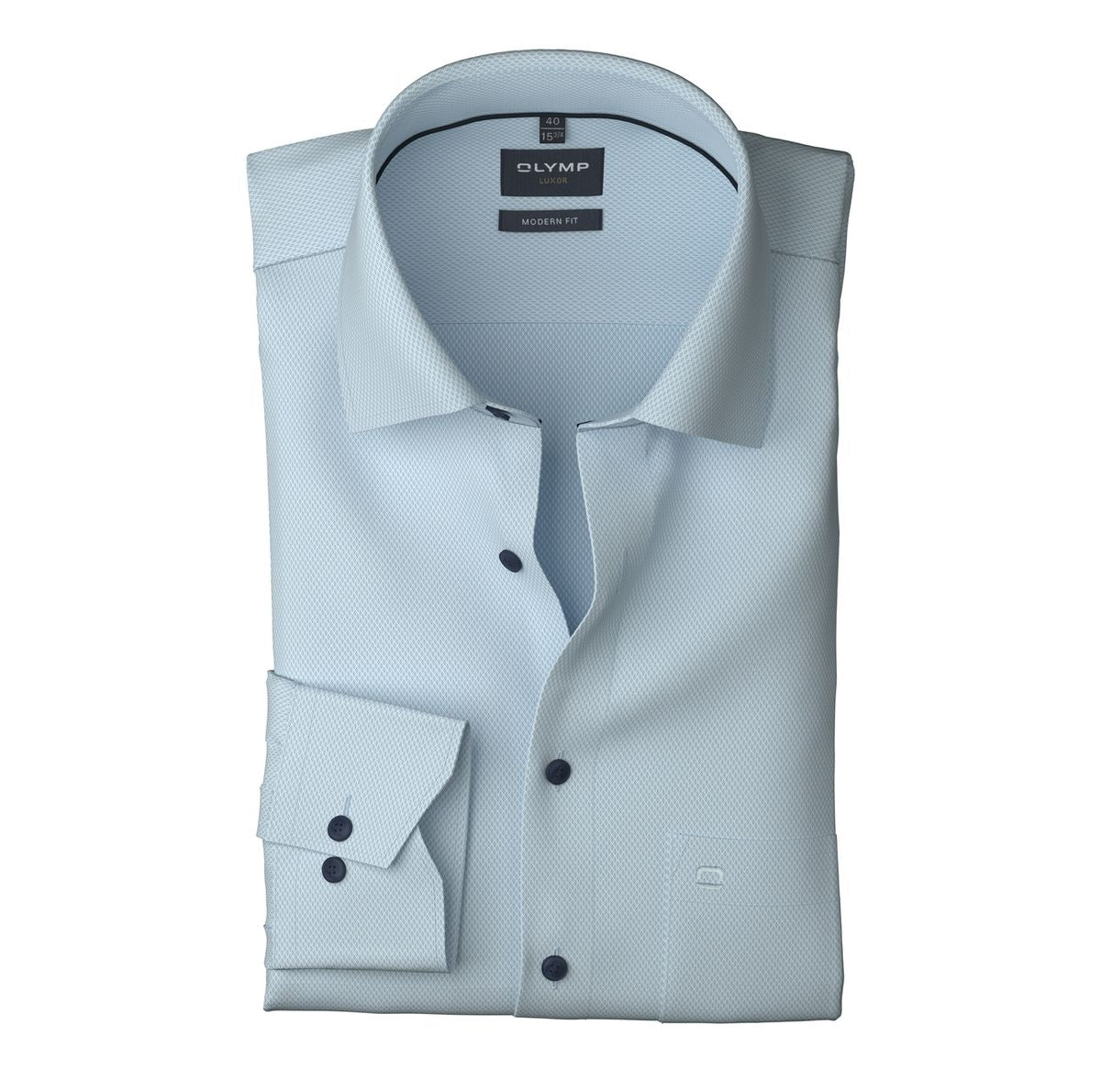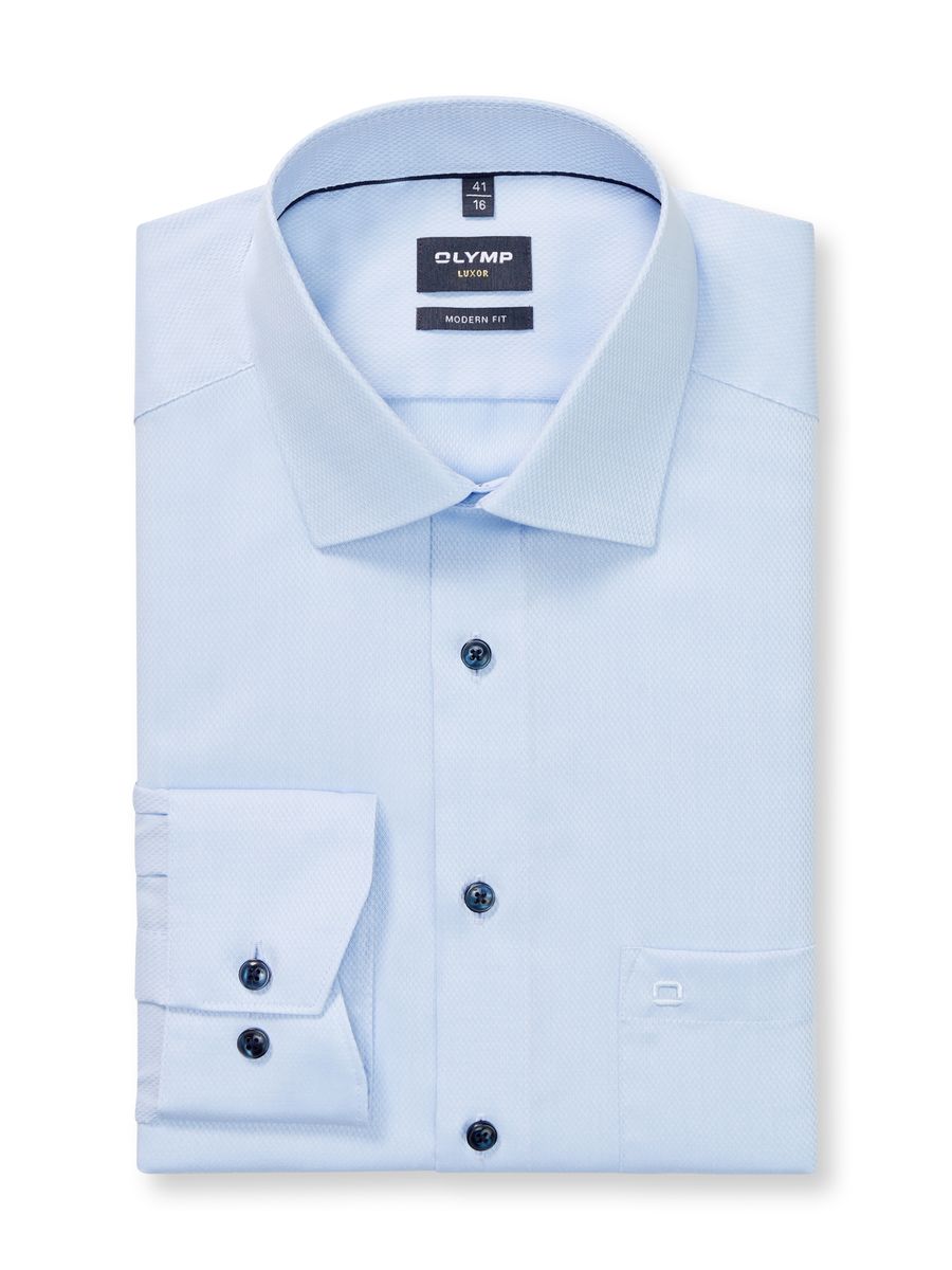 Der elegante OLYMP Luxor Business-Allrounder, einfarbig in Bleu, überzeugt stilsicher. Die Garne aus 100 Prozent Baumwolle schenken auf Grund ihrer speziellen Eigenschaften ein dynamisches und atmungsaktives Tragegefühl. Die sportive Linie und der vielseitige New Kent harmonieren perfekt. Bügelfrei.