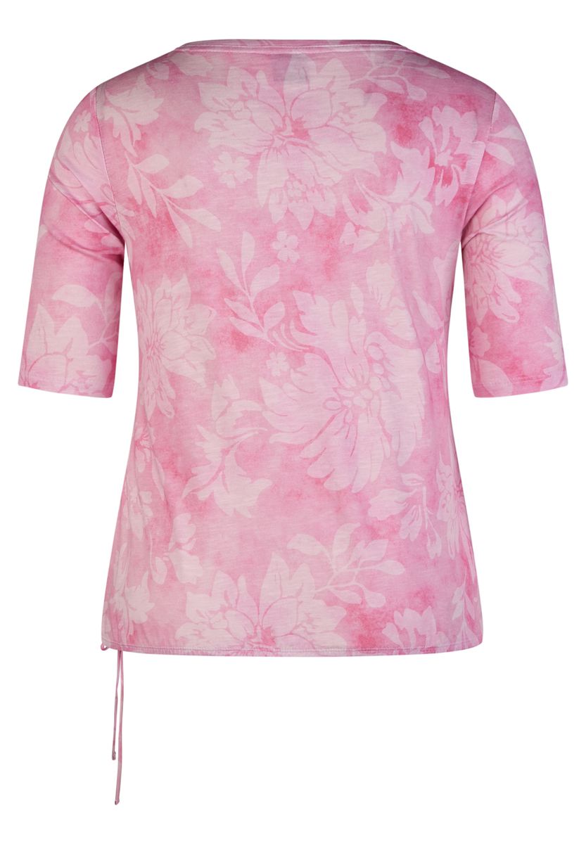 Der leichte Farbverlauf sorgt für eine moderne Optik, während der lockere Schnitt mit Rundhalsausschnitt und halblangen Ärmeln höchsten Tragekomfort bietet. Ein besonderes Detail ist der seitliche Tunnelzug mit Bindeband, mit dem sich die Passform individuell anpassen lässt.Florales Design mit sanftem Farbverlauf.Bequemer Rundhalsausschnitt & halblange Ärmel.Seitlicher Tunnelzug für individuelle Passform.