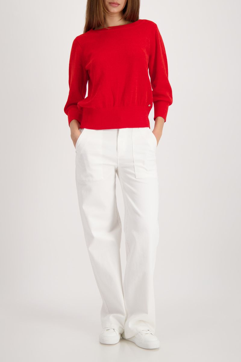 Ein stilvoller Strickpullover aus einer hochwertigen Baumwolle mit Rundhalsausschnitt und breiten gerippten Säumen.