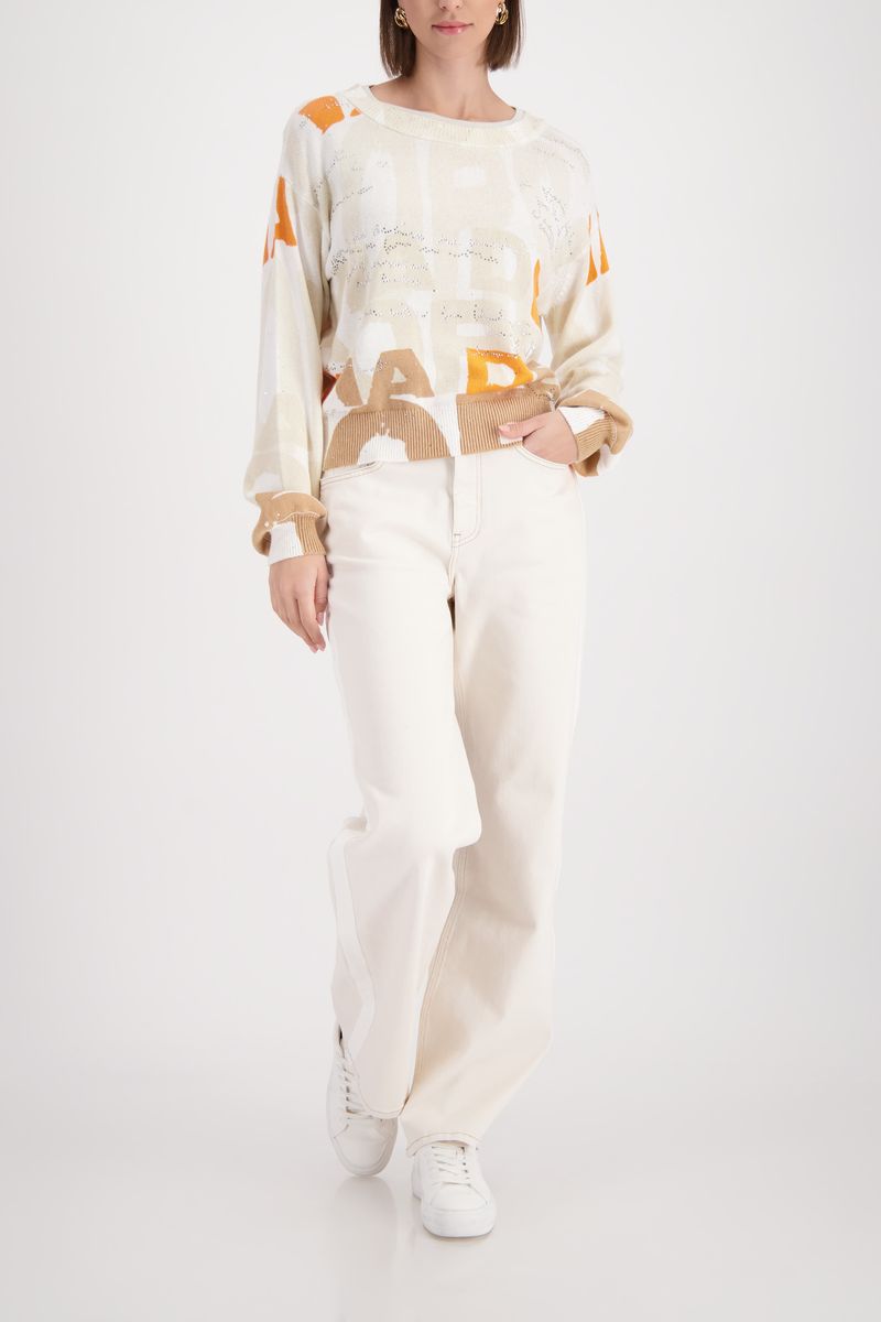 Strickpullover aus einer hochwertigen Baumwolle, mit funkelnden Pailletten und Strasssteinen, veredelt durch eine weiche Haptik und ein modisches Buchstaben-Muster.