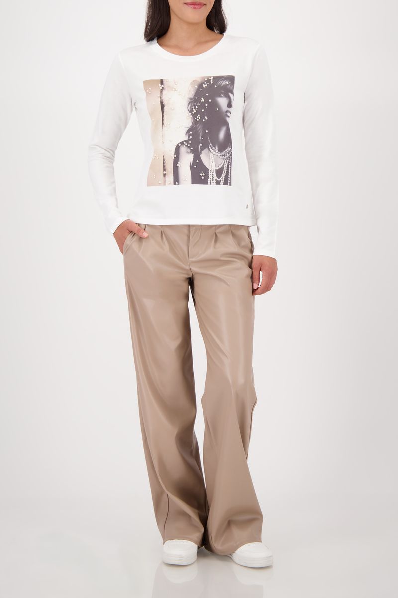 Elegantes Langarmshirt aus hochwertiger Baumwolle mit Modal. Geschmückt mit funkelnden Perlen und einem Frauenprint.