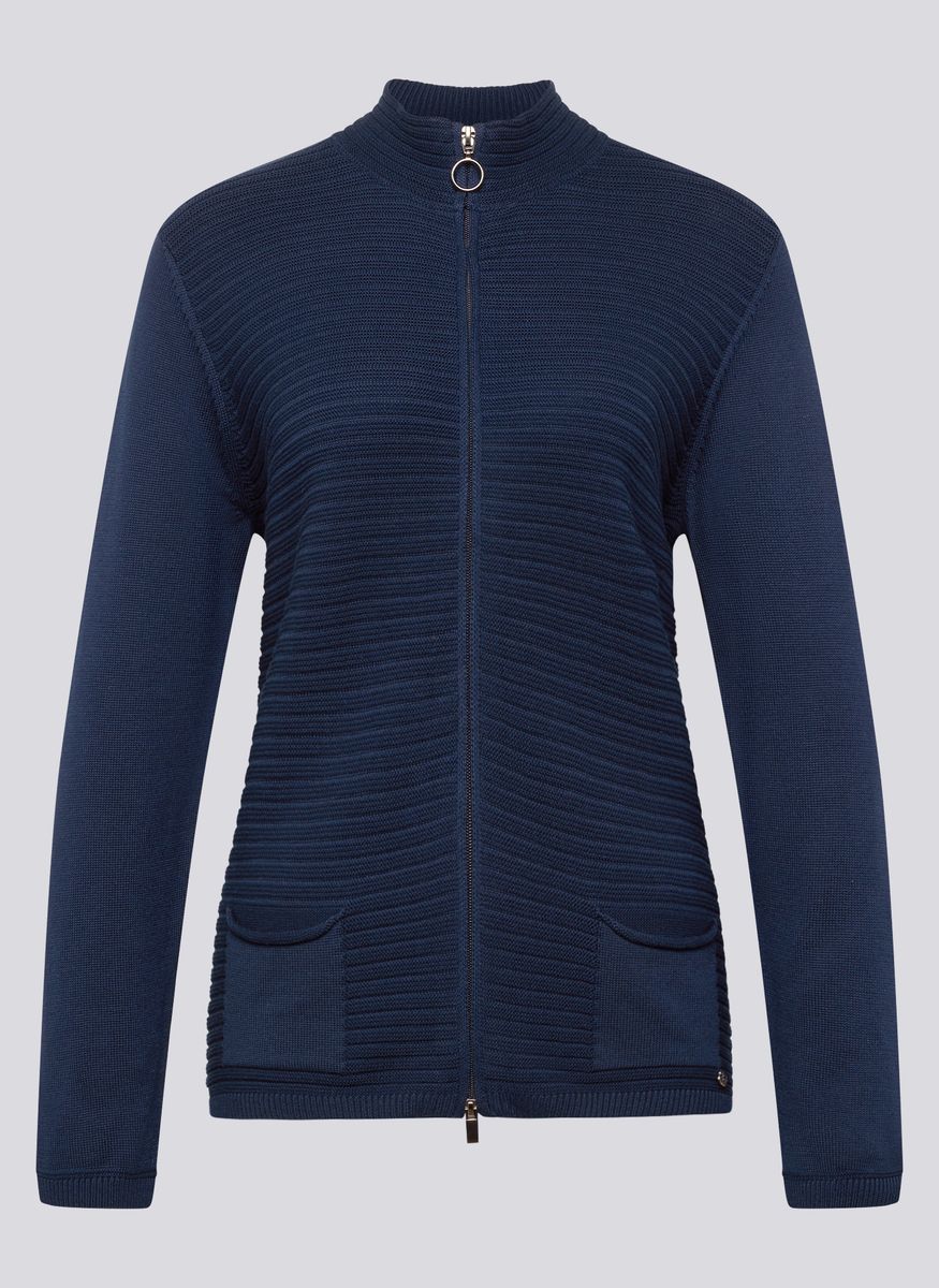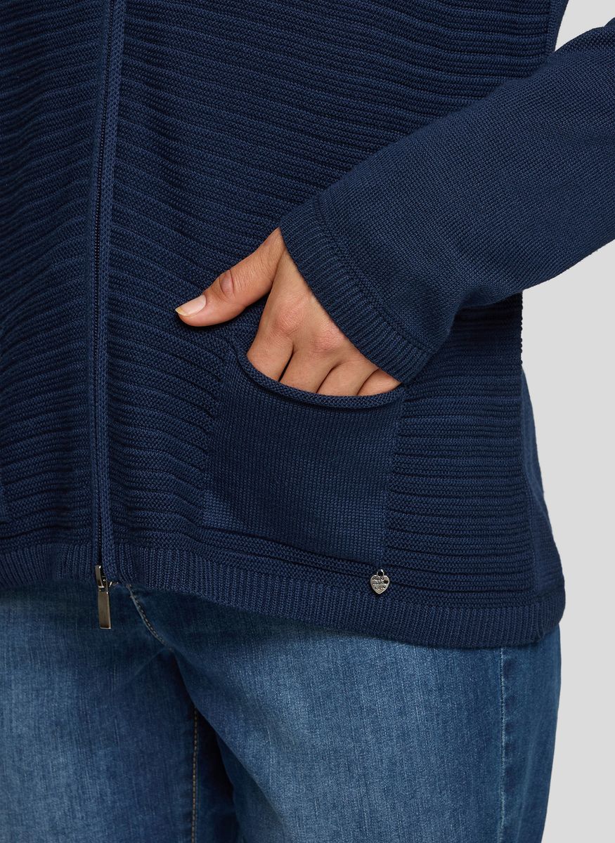 Diese Jacke vereint Tragekomfort mit klarer Linienführung. Der Reißverschluss mit rundem Zipper verleiht dem Look eine moderne Note, während das feine Strukturmuster dem Design Tiefe gibt. Zwei aufgesetzte Taschen bieten praktischen Stauraum. Der gerade Schnitt macht sie vielseitig kombinierbar _ ideal für den Alltag. Weiche Baumwollmischung. Mit aufgesetzten Taschen. Strukturstrick. Hochgeschlossener Stehkragen. 2-Wege-Zipper mit Ring-Zipperpuller.