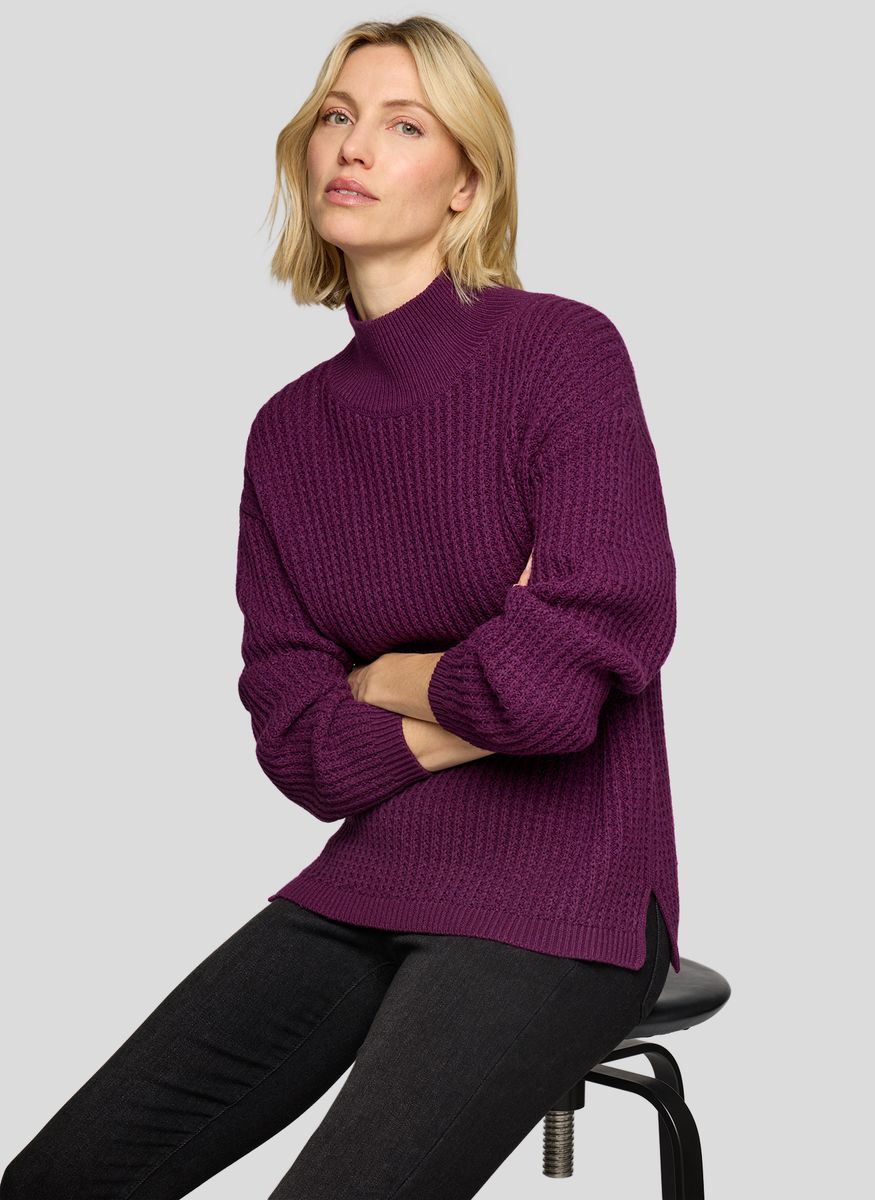 Der figurnahe Pullover präsentiert sich mit Rippenstruktur und formstabilem Strick. Der fein gerippte Stehkragen sorgt für einen stilvollen Akzent, während das softe Material angenehm auf der Haut liegt. Ein vielseitiges Modell für viele Gelegenheiten _ ohne Wollanteil, aber mit Komfort. Strukturstrick mit Rippenmuster. Weicher Griff ohne Wolle. Gerader, figurbetonter Schnitt. Stehkragen mit feiner Rippung. Ideal für lässige Looks und kühle Tage.