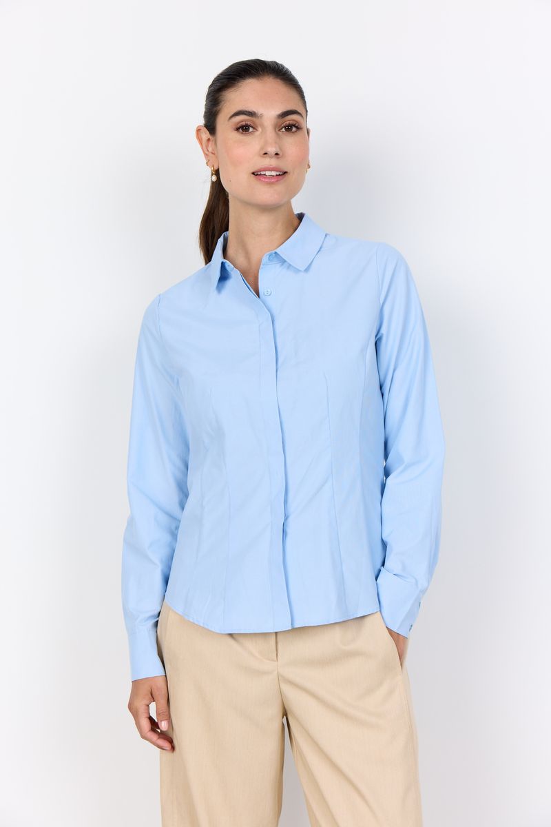 SC-Netti 6 ist eine klassische Bluse aus recyceltem Polyester und Bio-Baumwolle. Sie hat eine taillierte Passform, einen klassischen Kragen und einen verdeckten Knopfverschluss. Dieses feminine Bluse ist perfekt mit einem Blazer und einer Anzughose für einen raffinierten Look.