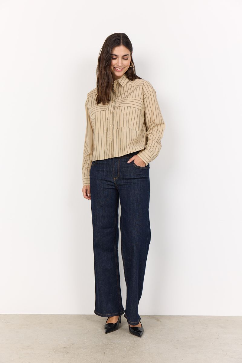 Das SC-VALENTINA 1 Hemd ist aus 53% recyceltem Polyester und 47% Bio-Baumwolle gefertigt. Es hat einen klassischen Kragen, einen Knopfverschluss vorne, lange Ärmel, zwei Brusttaschen und ein gestreiftes Druckmuster. Kombiniere es mit einer maßgeschneiderten Hose für einen formellen Look oder trage es mit Jeans für ein entspanntes Outfit.