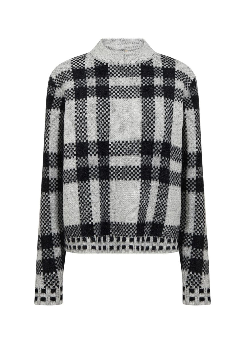 Der SC-VIBSA 1 Pullover ist aus einer Mischung aus 50% Polyester und 50% Nylon gefertigt. Er hat einen klassischen Rundhalsausschnitt mit einem auffälligen Karomuster und gerippten Abschlüssen. Kombiniere ihn mit maßgeschneiderten Hosen für einen raffinierten Look oder mit Jeans für einen lässigen Ausflug.