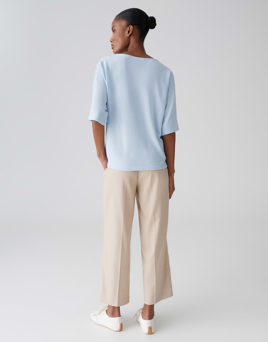 weite Passform, schmal zulaufender Schnittt, kurzer Fledermausärmel, U-Boot-Ausschnitt, Rückenlänge ca. 54 cm bei Größe 36, Model Größe 174 cm – trägt Größe 36, Jersey, Rippstruktur, weicher Griff, fließender Fall