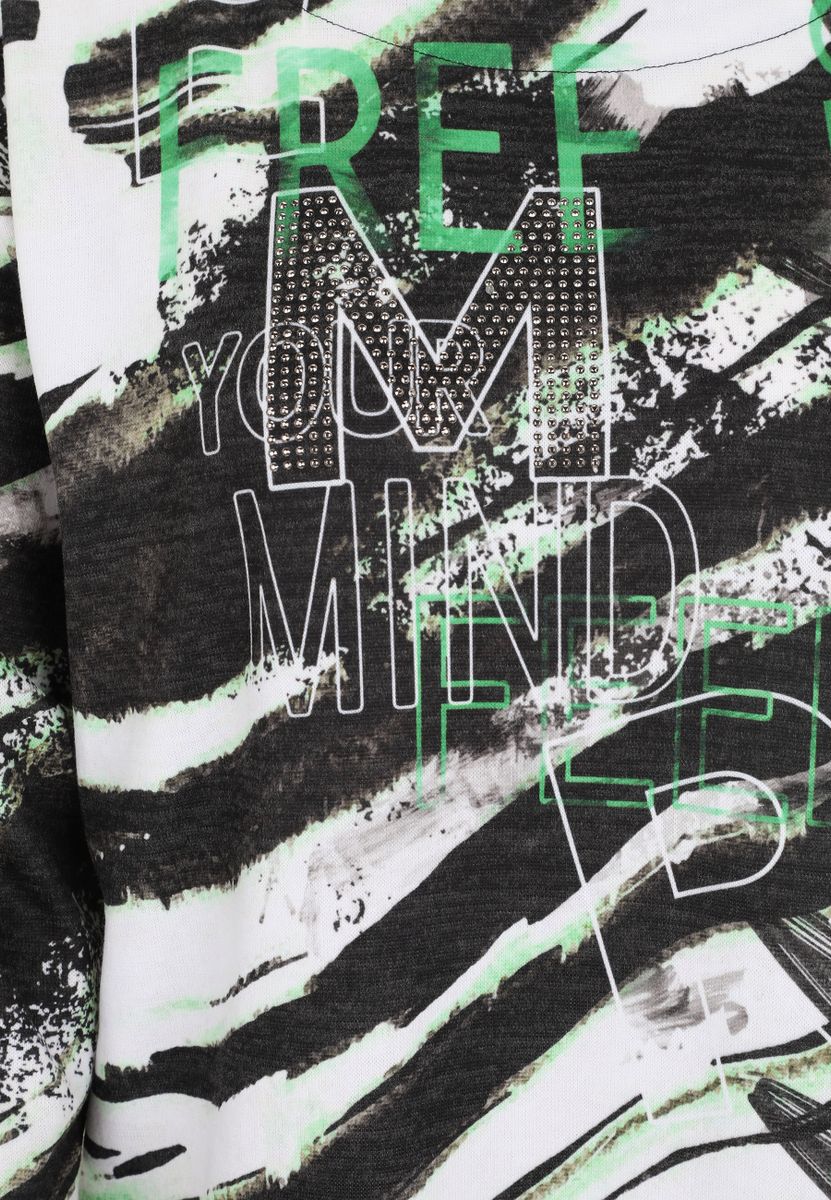 Der leichte Shirt-Pulli von Doris Streich besticht durch seinen kuscheligen "Cashmere-Touch". Das platzierte Motiv FREE im Vorderteil auf elastischer Wirkware und die Strass-Steinchen unterstreichen den lässig femininen Look. Das Shirt ist gerade