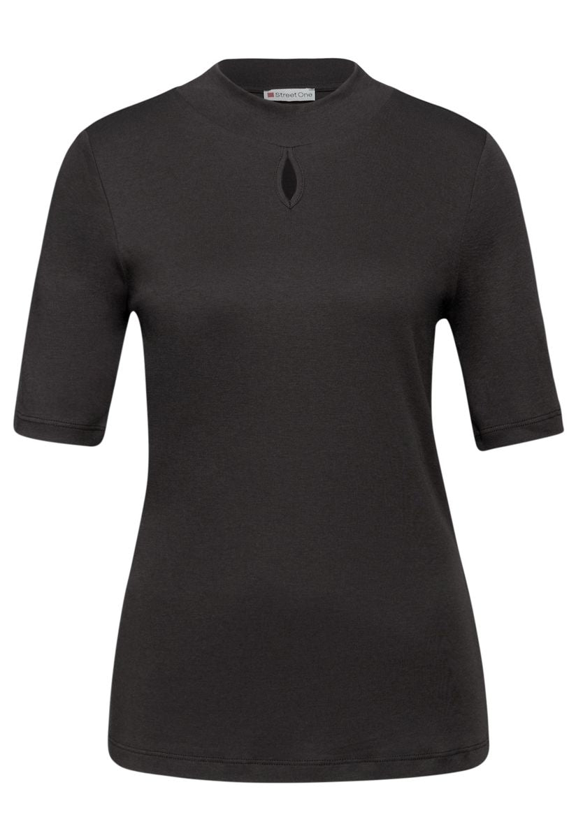 Dieses Damenshirt von Street One zeigt sich mit einem modernen Turtleneck samt Cut-Out-Detail – feminin und raffiniert zugleich. Der Baumwoll-Modalmix trägt sich angenehm weich und ist perfekt für warme Tage oder stylische Layering-Looks. In Unifarbe vielseitig kombinierbar – ein besonderer Hingucker im Alltag. Damenshirt Turtleneck mit Cut-Out Kurzarm Unifarbe Softer Baumwoll-Modalmix Material: 50% Baumwolle, 50% Modal