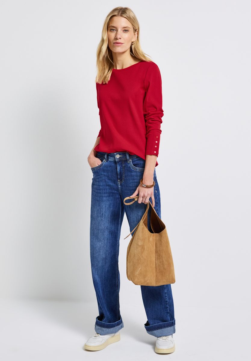 Dieses Shirt von Street One für Damen punktet mit feiner Rippstruktur und femininen Details. Der U-Boot-Ausschnitt und die Knopfverzierung am Ärmel verleihen dem Look eine stilvolle Note. Dank weicher Baumwollqualität mit Stretchanteil trägt sich das Shirt angenehm und sitzt passgenau. Damenshirt U-Boot-Ausschnitt Langarm mit Knopfdetail Feine Rippstruktur Softe Baumwollqualität mit Stretchanteil Material: 95% Baumwolle, 5% Elasthan
