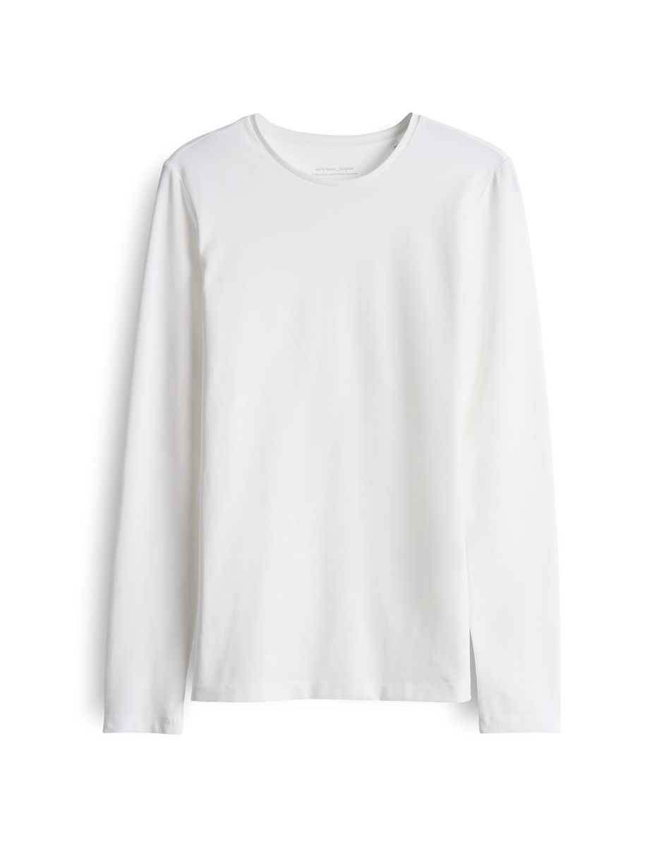 schmale Passform, leicht tailliert geschnitten, Langarm, Rundhalsausschnitt, Rückenlänge ca. 64 cm bei Größe 36 | ca. 68 cm bei Größe 40, Model Größe 178cm – trägt Größe 36, Jersey, weicher Griff, formstabil, elastischer Stoff