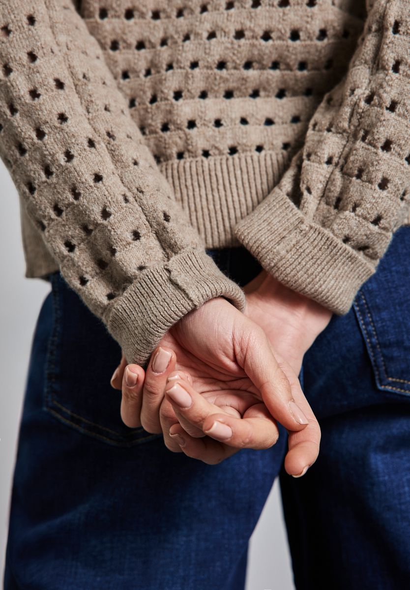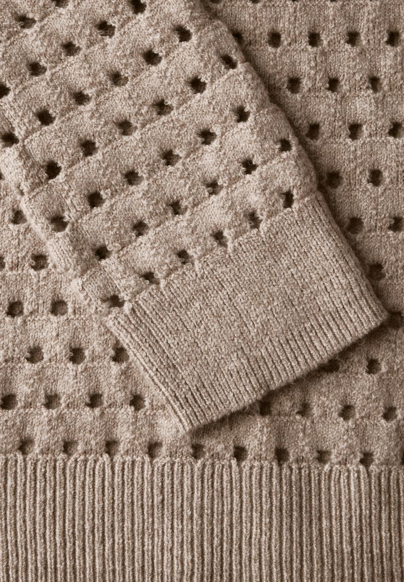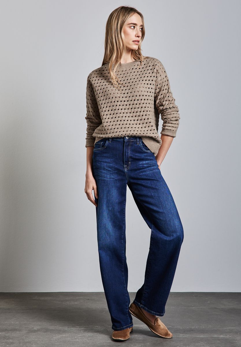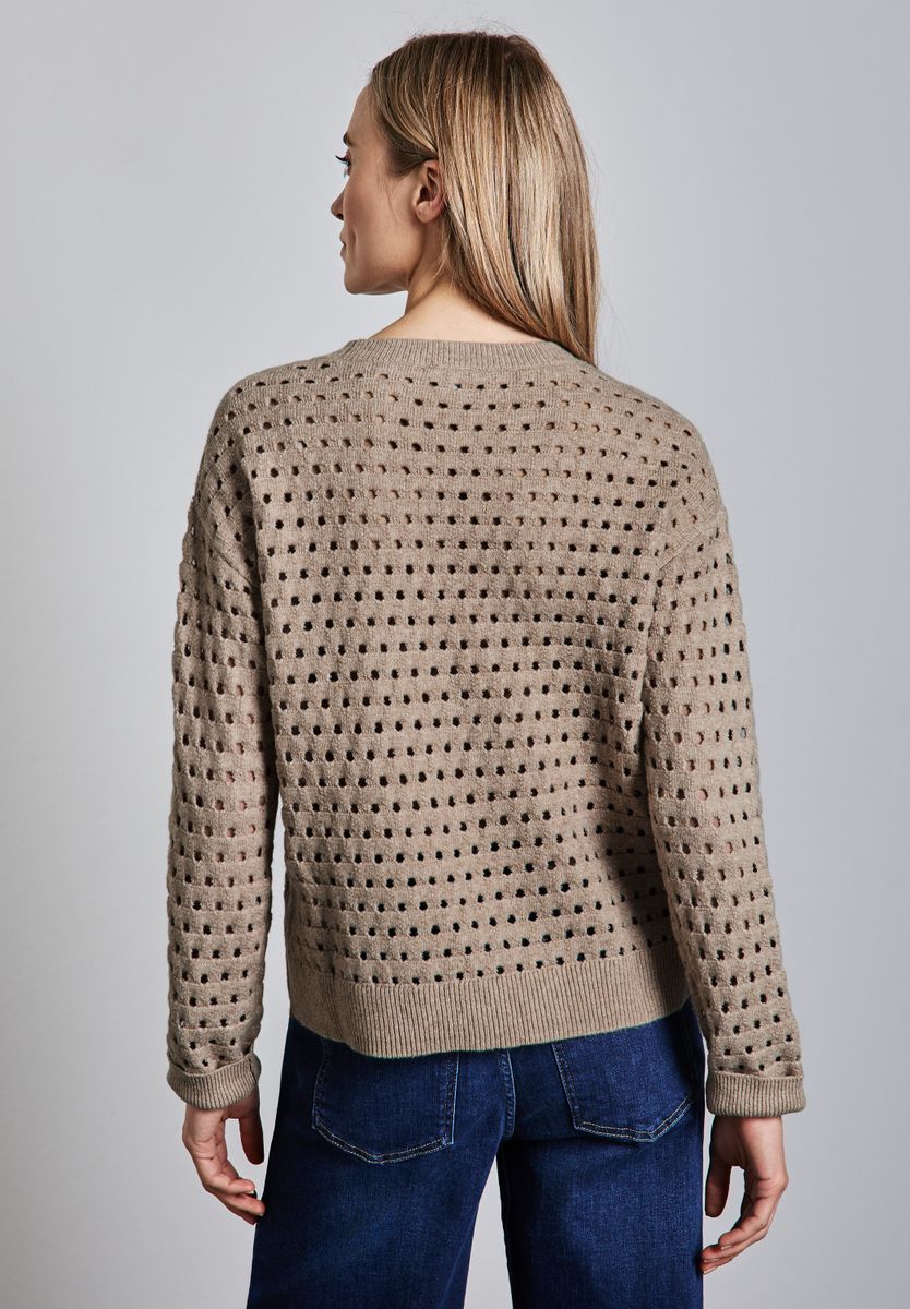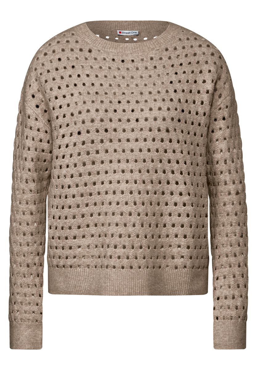 Der Strukturpullover von Street One für Damen bringt mit seinem Lochmuster und dem Rundhalsausschnitt moderne Details in dein Outfit. Der softe Materialmix macht ihn besonders angenehm zu tragen. Das offene Strukturmuster bietet einen leicht durchscheinenden Look.  Strickpullover  Rundhalsausschnitt  Langarm  Lochmuster  Softer Materialmix  Material: 33% Polyester, 31% Polyacryl, 24% Baumwolle, 12% Polyamid