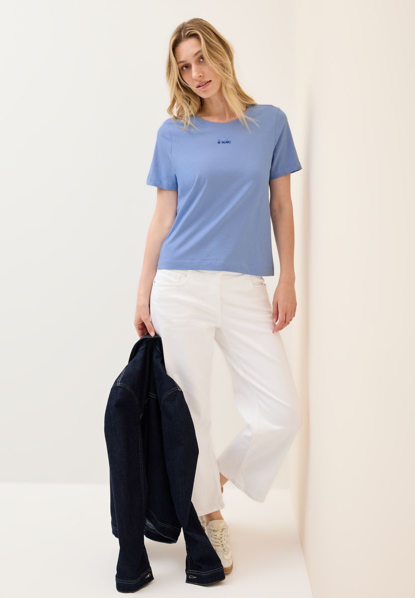 Das schlichte T-Shirt von CECIL für Damen überzeugt mit Rundhalsausschnitt, reiner Baumwolle und einem kleinen Wording-Print als Eyecatcher. Leicht und bequem – ideal für minimalistische Looks mit liebevollem Detail. Sommershirt Rundhalsausschnitt Kurzarm Kleines Wording-Detail Reine Baumwolle Material: 100% Baumwolle