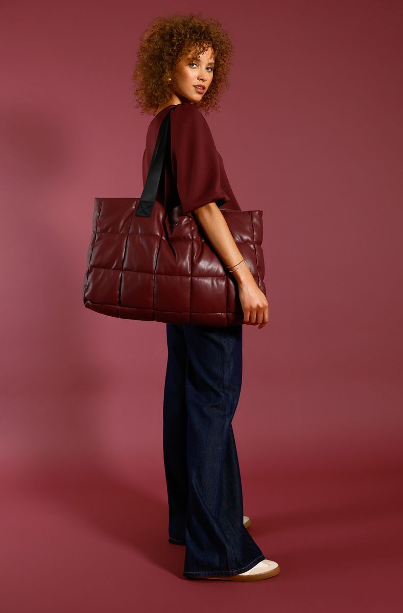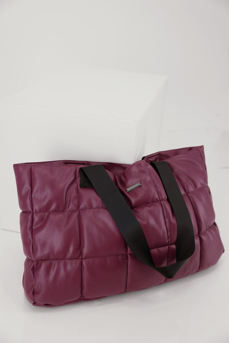 Elegante Steppentasche aus Lederimitat, mit Druckknopfverschluss, langen Trägern und einem charakteristischen Logo-Plättchen – für moderne Individualisten.