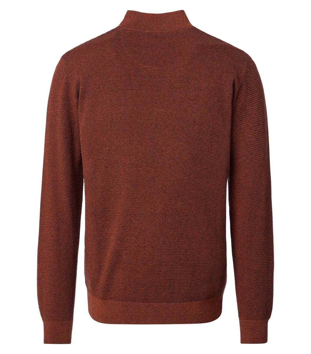Dieser Strick-Troyer überzeugt mit zeitloser Eleganz und angenehmer Wärme. Die feine Strickstruktur sorgt für eine edle Optik, während der hohe Kragen mit Reißverschluss für einen modernen Touch sorgt. Ob über einem Hemd oder solo getragen – dieser Troyer ist ideal für stilbewusste Looks an kühleren Tagen.