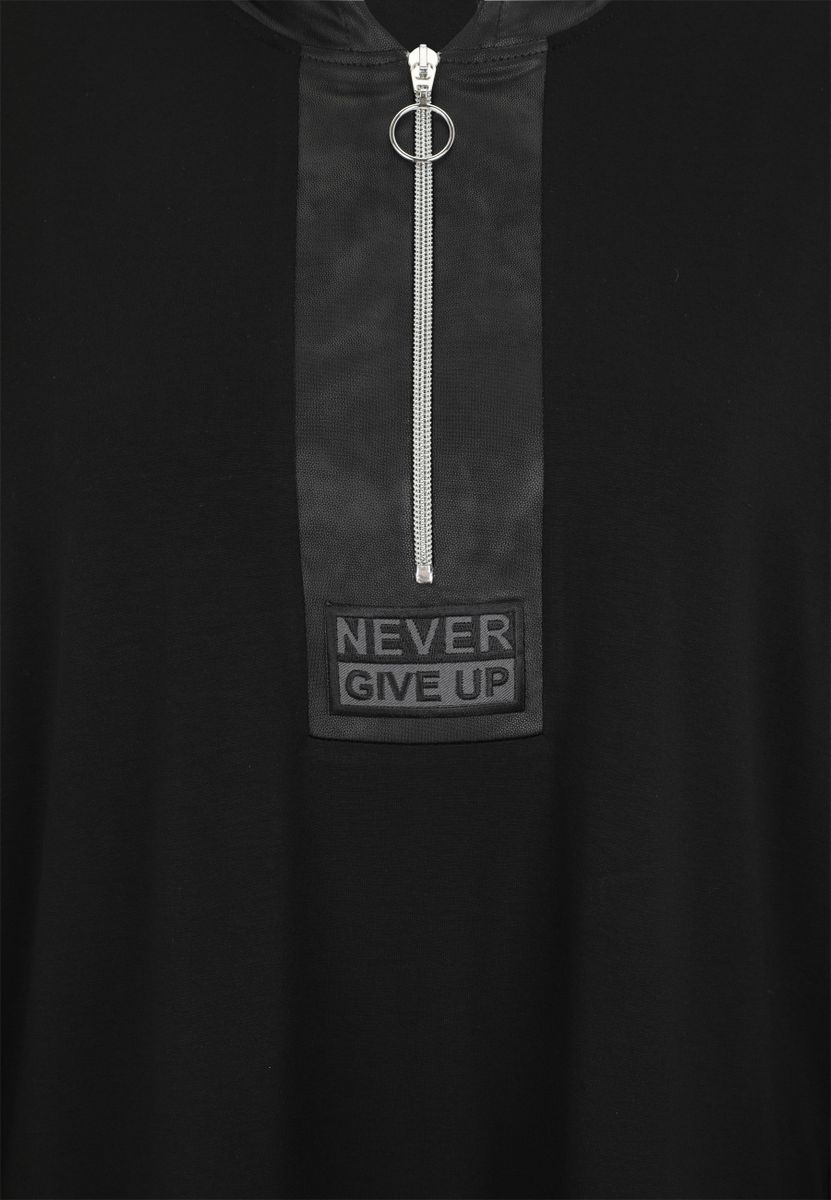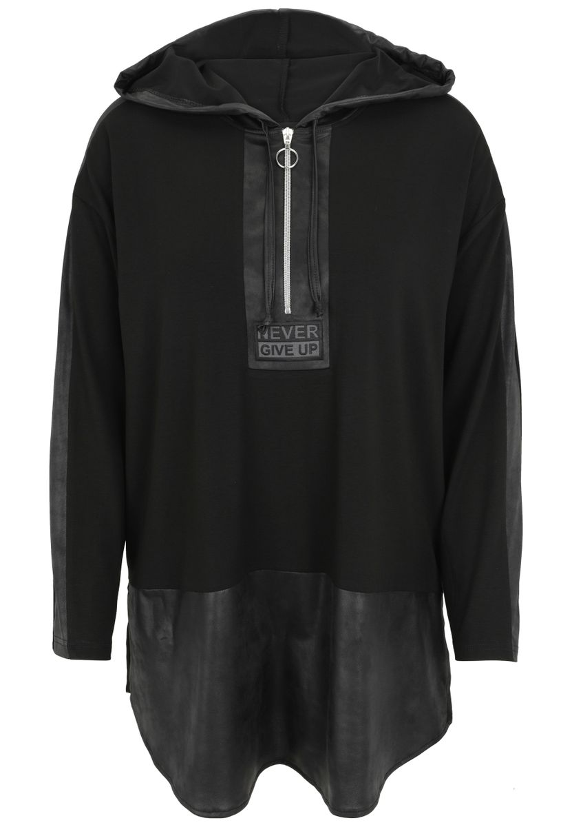 Dieses lässige Long-Shirt mit Hoodie von Doris Streich ist aus elastischem Jersey gefertigt. Die Einsätze aus Lederimitat, der Zipper mit dekorativem Anhänger, der Badge NEVER GIVE UP und der abgerundete Saum runden den lässigen Look ab.