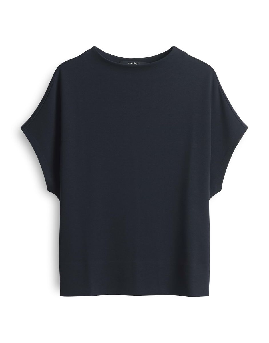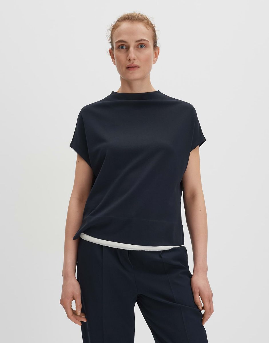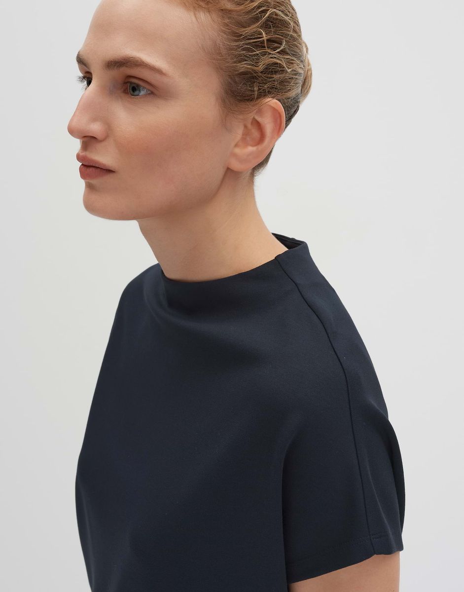 lockere Passform, gerader Schnitt, überschnittener Kurzarm, Funnel Neck, Rückenlänge ca. 55 cm bei Größe 36, Model Größe 176 cm – trägt Größe 36, Sweatware, weicher Griff, weich fließender Fall, elastischer Stoff