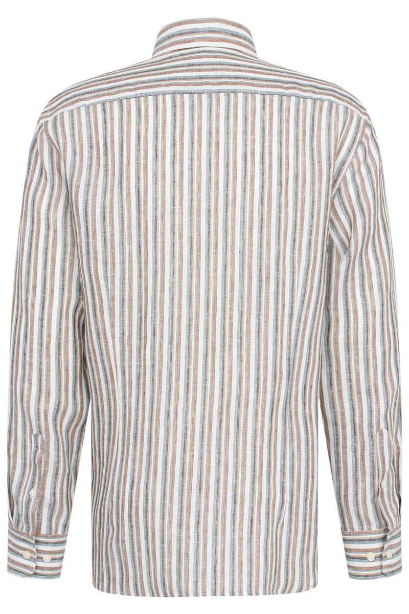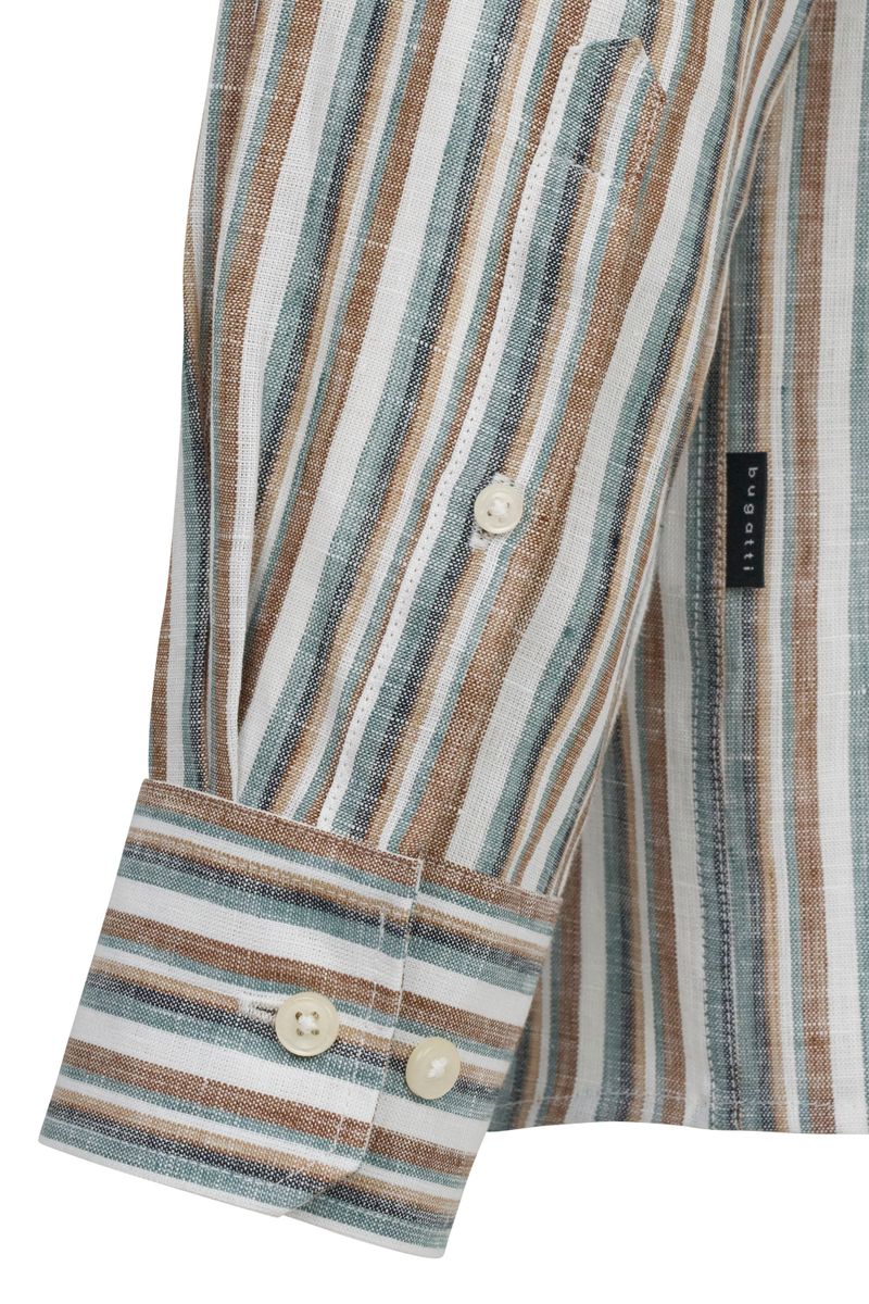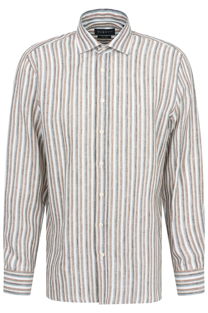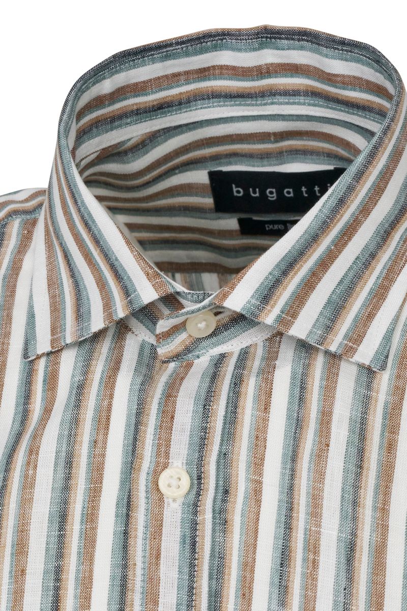 gestreiftes Hemd aus 100% Leinen mit Kentkragen, bugatti Fahne in der Seitennaht