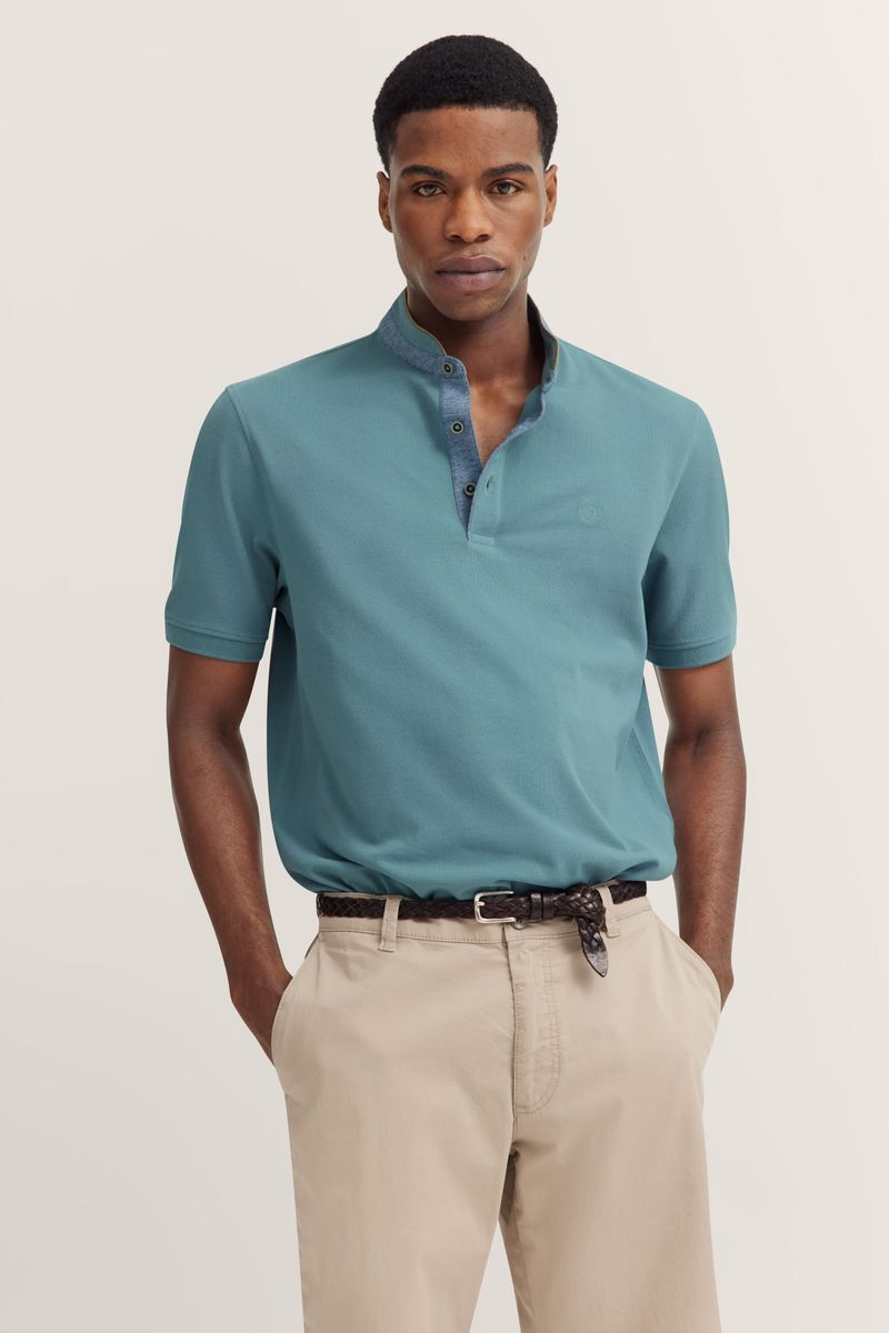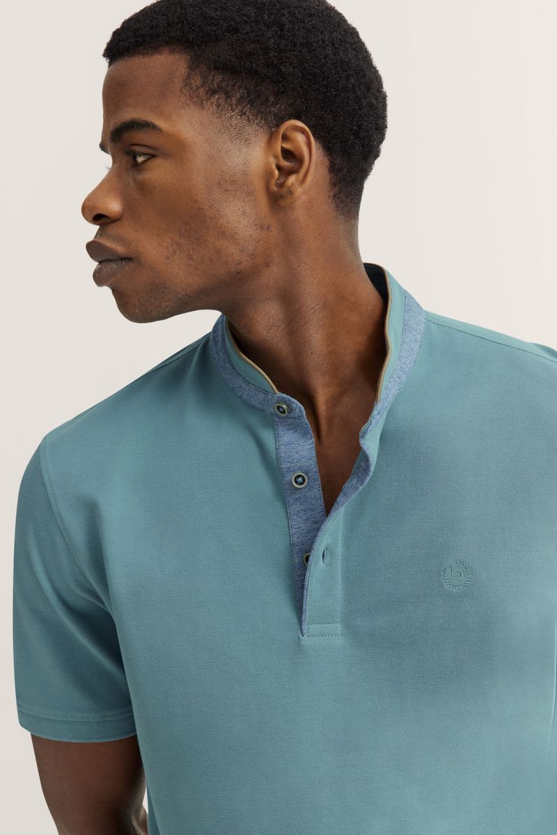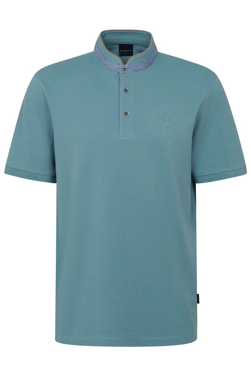 Basic Stehkragen-Polo, "b"-Stickerei auf der Brust und bugatti Flaglabel an linker Seitennaht