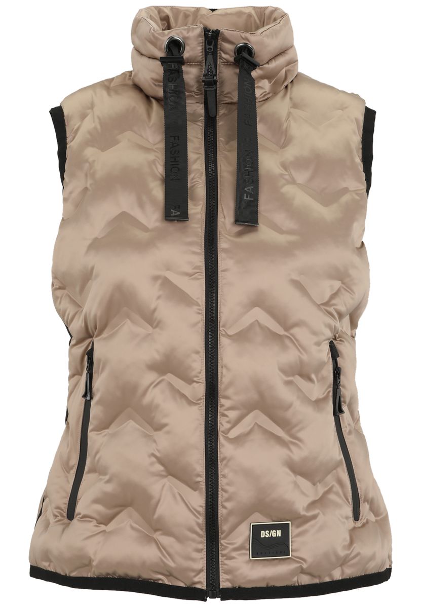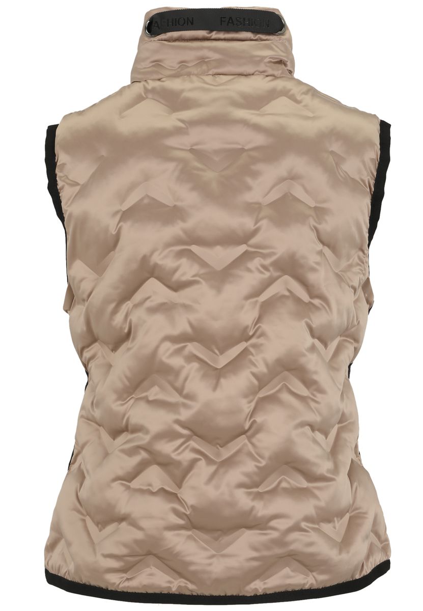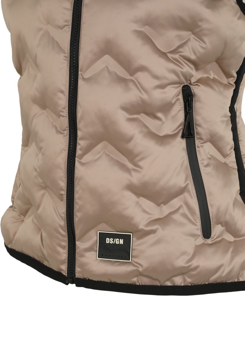 Dünn wattierte ärmellose Weste von Doris Streich aus softer Nylon-Ware mit sog. Ball-Stuffing gefertigt. Die Weste mit Ihrem dekoratives Allover 3D-Prägemuster wird komplettiert durch den Reissverschluss mit dekorativem Anhänger, Bändern mit 3D-Prägung,